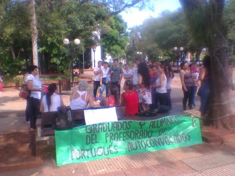 Dar clases e impartir los conocimientos que tienen es lo que buscan los profesores y alumnos de las carreras de portugués de Misiones, pero hacerlo es cada vez más difícil ya que en la provincia no están implementadas las leyes 26.468 y 26.206 que establecen la obligatoriedad del idioma portugués en el nivel primario y secundario. Entonces, cansados de esperar, egresados y alumnos de la carreras se autoconvocaron y se manifestaron para pedir, nada más y nada menos, el cumplimiento de la ley.“Nos autoconvocamos en la plaza 9 de Julio para solicitar la implementación inmediata de la ley 26.468 de educación y la 26.206 que establece la obligatoriedad del idioma portugués tanto en el nivel primario como en el secundario en la provincia de Misiones. Buscamos que se apliquen estas leyes que se establecieron en 2006 y 2009 para la enseñanza del portugués y todavía no se han implementado”, explicó Soledad Neis, profesora de portugués, en diálogo con PRIMERA EDICIÓN.Como son pocas las instituciones de la provincia que cuentan con horas creadas para enseñar portugués, los egresados de la carrera se encuentran con contados ámbitos en los cuales insertarse laboralmente.“La gran mayoría de los egresados nos encontramos de suplencia en suplencia o desempleados sin carga horaria por el hecho de que no hay creaciones de cargo. Son muy pocas las escuelas dentro de la provincia que tienen al portugués dentro de la currícula como lengua específica”, advirtió Neis.Entonces, tanto los egresados como los alumnos, se autoconvocaron en la plaza 9 de julio y se dirigieron al Consejo General de Educación (CGE) con la intención de concertar una reunión con alguna autoridad educativa que les pueda brindar una solución al problema con el que se enfrentan. “Debería haber un convenio con el CGE, pero como las autoridades superiores no toman las medidas necesarias, nosotros como egresados decidimos reunirnos y exigir que se respeten nuestros derechos”. Así fue como consiguieron una audiencia con Mauricio Maidana, presidente del CGE, para el próximo 3 de marzo, después de las 12 del mediodía. Allí, hablarán sobre su situación. Más de 300 egresadosLas dos instituciones educativas que brindan la carrera son la Universidad Nacional de Misiones (Unam) desde 2003 y el Instituto Saavedra desde 2012. En ambas instituciones han egresado cerca de 300 profesores, con poco espacio para ejercer su vocación en la actualidad debido a que no se implementan en la provincia dos leyes sancionadas. “Nuestro reclamo es con la intención de tener un lugar para trabajar. Porque detrás de cada uno de los egresados hay una familia que se esforzó para que un egresado estudie y, con el título, puede tener trabajo, pero debido a esto, ahora se encuentra en el veremos. Por eso venimos hasta la plaza, a pedir el respeto a las leyes y también el respeto de nuestro derecho como profesionales de la educación”, finalizó Neis.