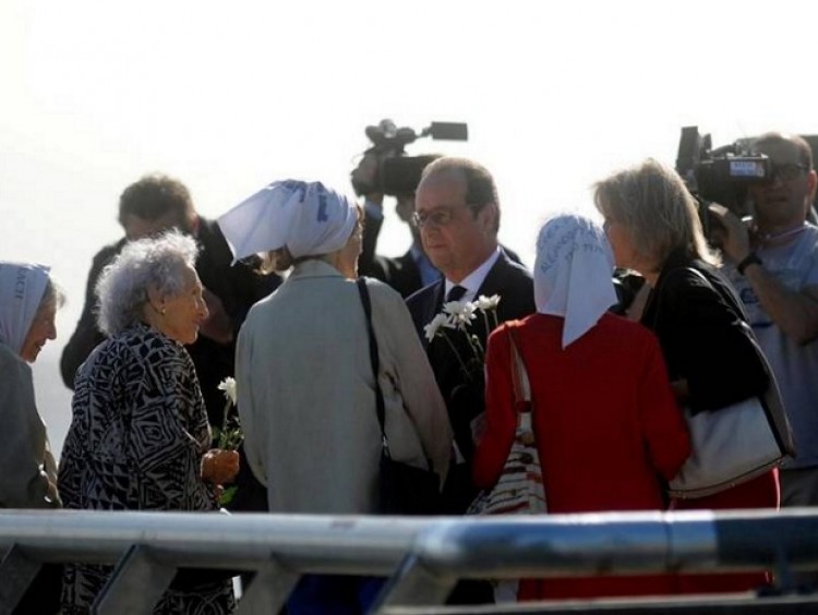 El presidente de Francia, François Hollande, realizó este jueves un homenaje a los desaparecidos en el Parque de la Memoria porteño al tiempo que destacó la tarea de organismos de Derechos Humanos, al indicar que cuando se produce un "crimen de masas" la "barbarie nunca acaba"."Siento una gran emoción. Quiero expresar la solidaridad de Francia para con las víctimas de la dictadura, víctimas de la opresión, víctimas de la barbarie. Y saludar la lucha de estos hombres, de estas mujeres que han buscado durante tantos años a sus hijos, a veces a sus nietos y que solo lo han logrado después de haber llevado tantos trámites", afirmó Hollande.Acompañado por la presidenta de Abuelas de Plaza de Mayo, Estela de Carlotto y por otros representantes de organismos de Derechos Humanos, Hollande destacó que "Francia ha querido acompañarles".Hollande resaltó que hubo "22 víctimas de la dictadura" quienes eran ciudadanos franceses y resaltó: "estábamos conscientes que en la argentina se había cometido un crimen de masas".Al mismo tiempo, destacó la tarea de "estas mujeres, estos hombres que todavía están aquí hoy porque la barbarie nunca acaba"."En otras partes del mundo hoy en día hay mujeres, niños, hombres que son asesinados por sus ideas", subrayó.Durante el acto, del que participaron la canciller Susana Malcorra y el jefe de Gobierno porteño, Horacio Rodríguez Larreta, Hollande y Carlotto, arrojaron flores blancas al Río de la Plata, en señal de homenaje a los desaparecidos.Del encuentro participó el nieto de Carlotto, Ignacio, quien fue invitado por la Embajada de Francia y a quien Hollande estrechó en un abrazo.Asimismo, el jefe de Estado francés entregó a Carlotto un informe sobre las tareas realizadas por su país en el marco de la búsqueda del joven, a quien se le restituyó su identidad en 2014.A su vez, Carlotto consideró que "la presencia de Hollande en este lugar emblemático, en este lugar de la memoria duele pero es necesaria"."Esto sirve para decir también a los que dicen basta, a los que dicen  esto hay que olvidarlo  que no, que la memoria esté presente", subrayó.Carlotto destacó "el amor que sentimos las Abuelas" por Francia y destacó el respaldo de ese país a organismos de Derechos Humanos "durante la dictadura y en democracia"."Ellos pueden dar un ejemplo. Para los que dicen que hay que olvidar (los delitos de lesa humanidad durante la dictadura), la memoria tiene que estar presente", sostuvo Carlotto que destacó lo  emotivo del encuentro de su nieto recuperado Ignacio con el mandatario galo: "Es como el milagro de la resurrección verlo de carne y hueso", luego de una búsqueda de tantos años.En declaraciones a la prensa, Carlotto también reiteró que si el mandatario de Estados UNidos, Barack Obama, les solicita una entrevista a Abuelas concurrirá al encuentro para pedirle la desclasificación de los archivos que tiene su país sobre la dictadura, pero aclaró que "no corresponde" acompañarlo a la ex Esma.Fuente: Agencia de Noticias NA