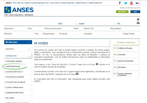 La Anses sigue agilizando el trámite de presentación del certificado de escolaridad. Desde noviembre pasado, las escuelas pueden cargarlo en www.anses.gob.ar (con una Clave de la Seguridad Social Corporativa), lo que evita que el titular tenga que llevarlo a las oficinas del organismo.También se puede confirmar la realización de la carga por parte del colegio en forma online, ingresando desde la web a la sección Mi Anses trámites con la Clave de la Seguridad Social y, desde allí, confirmar que la escuela haya realizado la presentación.Los titulares deben presentar obligatoriamente dicho certificado para el cobro de la Ayuda Escolar Anual y para acceder a la Asignación Universal por Hijo para Protección Social –AUH– (solo aquellos niños de 45 días a 4 años de edad que la perciban tendrán que presentar la libreta o certificado).Con respecto a estas innovaciones, el Director Ejecutivo de la Anses, Emilio Basavilbaso, comentó: “Uno de los objetivos principales de la Anses es la renovación y mejora de todas las herramientas que ponemos a disposición de los ciudadanos que deben realizar un trámite, de modo que puedan hacerlo en forma ágil y en el menor tiempo posible. Por eso, si bien el certificado escolar puede seguir presentándose en forma presencial en nuestras oficinas, en este caso la Anses ofrece una variante innovadora y rápida”.Paso a paso: cómo presentar el certificado desde <a href="http://www.anses.gob.ar/">www.anses.gob.ar</a>1) Ingresar en el apartado Prestaciones y servicios, opción Asignaciones Familiares.2) Hacer clic en Ayuda Escolar Anual y luego en el formulario PS 2.68 ACREDITACIÓN ESCOLARIDAD / ESCOLARIDAD ESPECIAL / FORMACIÓN. Completarlo en forma online e imprimirlo.3) Llevar el formulario al establecimiento educativo para ser completado y certificado. Si la escuela cuenta con la Clave de la Seguridad Corporativa, realizará la carga del formulario a través de la web.4) Ingresar en Mi Anses trámites con la Clave de la Seguridad Social y corroborar que el formulario haya sido cargado.Ayuda Escolar, nuevo monto: $808- El pasado 11 de febrero, el Presidente Mauricio Macri junto a Emilio Basavilbaso anunciaron el aumento de la Ayuda Escolar, que pasa de $700 a $808, y que será percibido de la siguiente manera:- Trabajadores en relación de dependencia: a partir de 1º de marzo- Jubilados y pensionados: junto con el haber de marzo de 2016 desde el martes 8.- En todos los casos, deberá presentarse en cualquier momento del año el certificado de escolaridad ante la Anses de los niños, niñas y adolescentes.
