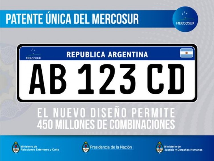El Gobierno ratificó este viernes que el primero de abril próximo comenzarán a entregarse en el país las nuevas patentes de identificación para vehículos, que serán similares a las que utilizarán todos los países del Mercosur.Se trata de la "Placa de Identificación Metálica del Automotor y Motovehículos", más conocidas como "Patente Mercosur", que se utilizarán en la Argentina, Brasil, Uruguay, Paraguay y Venezuela en forma obligatoria desde este año.   La Dirección Nacional de Registros de la Propiedad Automotor (DNRPA) (que depende del Ministerio de Justicia) dispuso este viernes que aquellos registros que cuenten con placas del anterior modelo -es decir, del aún vigente- deberán continuar utilizándolas hasta agotarlas.   Fuentes de la actividad registral indicaron  que los usuarios deben tener en cuenta que no se reempadronarán los vehículos: el automotor que tiene asignado un numero de dominio, seguirá con ese mismo numero.Inclusive si pierde, extravía o le roban la chapa, tendrá una nueva placa, pero con la misma numeración.De este modo, estarán en vigencia por tiempo aún indeterminado las placas numéricas, las alfanuméricas (que son las actuales) y las del Mercosur.FUENTE:N/A