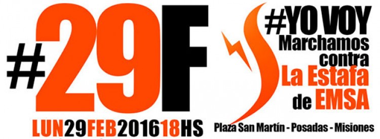 Usuarios “embroncados” con la distribuidora de energía Electricidad de Misiones SA (Emsa) se manifestarán este lunes desde las 18 en la plaza San Martín de esta ciudad en contra del “tarifazo” que aplicó la prestataria provincial en las boletas que llegaron a las casas, comercios e industrias del centro capitalino desde el pasado jueves. El enojo de los clientes de Emsa no se hizo esperar y en las redes sociales la bronca explotó en una nueva convocatoria, esta vez para exigir que la firma y el gobierno provincial refacturen las boletas que reflejan el consumo de enero y las vuelvan a los valores anteriores al tarifazo, y que se reevalúe el impacto del aumento decidido, ya que muchos consideran que las boletas son “impagables” así como llegaron. La indignación se vio reflejada en el mundo virtual con una catarata de insultos a la empresa y a sus directivos, acompañadas de copias y fotos del valor de las facturas. La mayoría promedia los mil pesos mensuales para las conexiones residenciales y llegan hasta los 2.500 o 3 mil en casas de clase media. Los comercios también recibieron con enorme enojo sus facturas, que van desde los 5 a los 10 mil pesos en promedio. Es que hasta fines de esta semana, los usuarios no habían tomado una real dimensión del impacto de los anuncios realizados por el presidente de Emsa, Sergio Ferreira, quien anticipó que por la caída de los subsidios nacionales los usuarios iban a recibir el zarpazo a los bolsillos con incrementos de los valores que van desde el 100 al 280%, según cada categoría. Aumento indebidoPero la bronca mayor se dio cuando este diario develó que en realidad el aumento no debió cobrarse todavía, ya que las facturas repartidas reflejaron el consumo real registrado por los clientes entre el 4 de enero y el 2 de febrero, es decir, en tiempos en los que todavía la compra al por mayor de la energía estaba subsidiada para Emsa. En otras palabras, la empresa compró barato la energía de enero, pero se la cobró carísimo a sus usuarios, tal vez con la ilusión de que nadie se percatara de la maniobra que de mantenerse en pie, le hará ganar varios millones de pesos a la deficiente prestataria. Los subsidios nacionales quedaron sin efecto a partir de la Resolución 06/2016 de la Secretaría de Energía de la Nación, que en su artículo 1º señala claramente que se aprueba “la reprogramación trimestral de verano para el Mercado Mayorista Eléctrico… correspondiente al período comprendido entre el 1° de febrero de 2016 y el 30 de abril de 2016”.Canciones de protestaEl músico misionero Gervasio Malagrida fue el primero en convocar a la marcha del lunes 29 en las redes sociales. Lo hizo casi en forma compulsiva después de recibir la boleta de su domicilio por un valor de 2.700 pesos para una conexión doméstica. De inmediato, cientos de usuarios con la misma situación le dieron forma a la marcha “29F/sevienelanoche” o “marcha de los focos quemados” como también la denominaron en las redes sociales. Según adelantó el popular músico, dada la dimensión de la convocatoria, procurará que se sumen más artistas para un festival de protesta en la misma plaza y a metros de la oficina de Ferreyra. “Te denuncio Sergio Ferreyra por estafa a todo el pueblo de Misiones”, disparó desde la red social. “Hoy me llegó la factura por 2.722 pesos por una instalación domiciliaria. Vivimos inundados por una de las represas más grandes del mundo, devastados por las pestes que nos metieron para generar energía”, manifestó el artista en su muro de Facebook, posteo que generó la adhesión inmediata de decenas de personas. “No hay gas natural, ni vino nunca el gasoducto. Estamos desparejos con el resto de Argentina por el calor y la falta de recursos. ¿Nos merecemos esta estafa? ¿Por qué no nos defiende nadie? Políticos irresponsables, ¿los votamos para esto, para que nos hagan pagar por lo que hacen mal?” señaló en su descargo público. InterpretacionesEn el medio de las expresiones de bronca de quienes aseguran que se manifestarán este lunes, también hubo cruces entre usuarios que analizaron los orígenes del “tarifazo” culpando al Gobierno nacional o al provincial de la suba. “No es por defender a Emsa, también estoy en contra del aumento de la luz, pero esta suba se debe a la quita de subsidios por parte del gobierno de Macri” disparó una usuaria, a la que otra le contestó: “La culpa es del Gobierno provincial al que se le sigue votando, a diferencias de otras provincias siempre pagamos la luz más cara del país”.