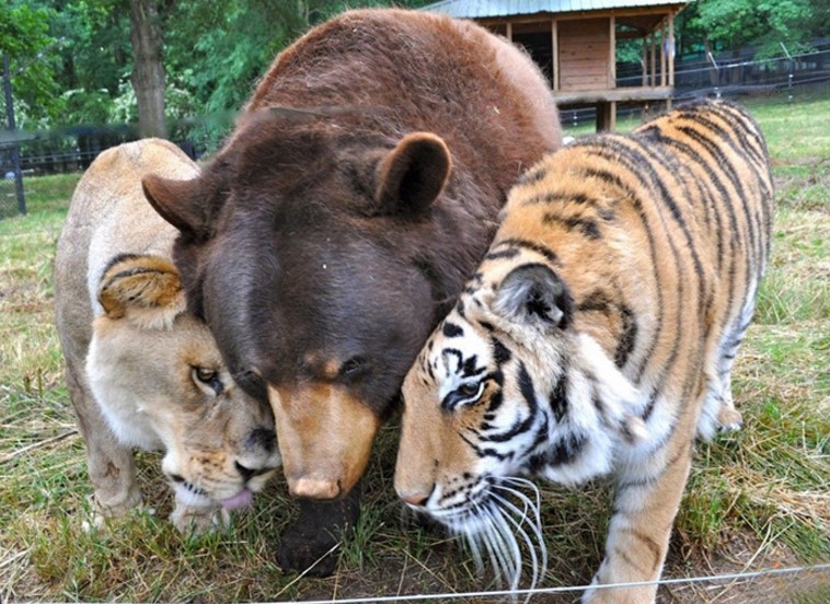 CON FOTOS Y VIDEO: La increíble relación entre un oso, un tigre y un león