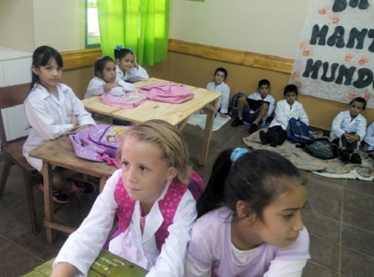 A falta de muebles, los chicos de primaria empezaron el año en el piso
