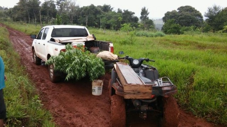 Tras el procedimiento que se realizó el miércoles en esta localidad, con el que se desmanteló un centro de producción de marihuana fraccionada que era vendida en Brasil, fueron reforzadas ayer las labores de los investigadores policiales en la zona ante las firmes sospechas de más plantaciones de cannabis sativa en otros puntos de la costa del río Uruguay.La sorpresa del allanamiento realizado por la Policía provincial, principalmente efectivos de la Unidad Regional con asiento en San Vicente, fue mayúscula cuando hallaron las herramientas con las que la droga era secada y prensada, pero también el desarrollo de plantas adultas y plantines con intenciones de lograr una producción mayor.De acuerdo a voceros policiales, en el mismo operativo fue detenido un hombre de 27 años, que vivía allí junto a una mujer y su hija, que tenía pedido de captura en Brasil por diversos delitos, pero también desde la comisaría de Colonia Aurora era investigado por un caso de homicidio.Las investigaciones fueron iniciadas por personal de la División Toxicomanía de la Unidad Regional VII, y llegaron a la propiedad donde fueron halladas veinte plantas “adultas” de cannabis sativa en diversos puntos de la chacra ocultas por la vegetación y cubiertas por el olor de las plantas de citronela, características en la región.Fueron descubiertos veinte kilogramos de la droga en proceso de prensado para confeccionar luego panes o ladrillos. También fueron secuestradas bolsas plásticas con semillas y ramas de marihuana. Además de plantines germinándose en bateas especiales.Todas las actuaciones contaron con el apoyo del Grupo de Operaciones Especiales de la UR VIII, y fueron informadas al Juzgado Federal de Oberá, a cargo de José Luis Casals.TabacaleroEl detenido el miércoles habría ocultado las plantas de marihuana en varios puntos de la chacra. Y desplegó la actividad ilícita bajo la fachada de un presunto productor tabacalero de El Soberbio.