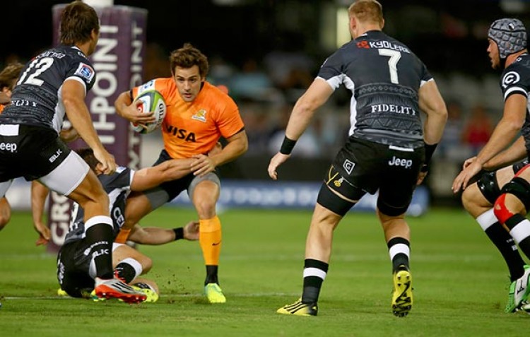 El conjunto nacional, que ganaba 15-13 al cabo del primer tiempo, cumplió una buena labor, pero en el segundo tiempo, después de jugar con dos hombres menos en el cierre de la parte inicial, sintió el esfuerzo físico y no pudo con el potente equipo local.Hubo un buen trabajo defensivo, salvo a la hora de contrarrestar el maul sudafricano en gran parte del encuentro, pero a la hora de atacar el elenco naranja cometió varias imprecisiones de manejo. Además, hubo fallas en las formaciones fijas.Más allá de la derrota, el equipo de Raúl Pérez le jugó de igual a igual a uno de las mejores franquicias sudafricanas, y además se llevó un punto bonus que puede ser decisivo en el final de la fase regular.  Para resaltar las tareas de Santiago Cordero, autor de un try bárbaro cuando Jaguares jugaba con 13, de Santiago González Iglesias entre los backs, y de Rodrigo Báez, pese a la amarilla, y Leonardo Senatore, entre los forwards.El plantel de Jaguares regresará mañana al país y el próximo fin de semana tendrá fecha libre. Su próxima presentación será ante los neocelandeses de Chiefs el sábado 19 de marzo en el estadio de Vélez Sarsfield.Pese a ser vapuleado por momentos por los forwards rivales y jugar con dos hombres menos en los últimos 7 minutos de la etapa, Jaguares se fue al vestuario en ganancia por 15-13. Joe Pietersen puso en ventaja con un penal a los sudafricanos, pero enseguida Santiago González Iglesias habilitó a Leonardo Senatore, quien quebró la línea de ventaja y tras ser tackleado habilitó a Emiliano Boffelli, quien se cortó hacia el ingoal y puso en ventaja al equipo argentino.No duró mucho la alegría. Cuatro minutos más tarde los Sharks comenzaron a hacer estragos con su maul y volvieron a ponerse al frente cuando Marcell Coetzee apoyó en el ingoal naranja.   Un penal de Nicolás Sánchez niveló el marcador pero los Sharks siguieron siendo más. Sin embargo, la buena defensa argentina forzó imprecisiones que le permitieron recuperar la ovalada.Una infracción cambiada por puntos por Pietersen puso nuevamente en ventaja a Sharks y ahí empezó el peor momento de Jaguares, que, por suerte, terminó con final feliz en ese segmento. Porque el maul de Sharks siguió siendo devastador y empezó a forzar infracciones que derivaron en la amonestación del mendocino Rodrigo Báez a los 31. Y dos minutos después vio la tarjeta amarilla Pablo Matera por frenar a Willie Le Roux sin respetar las cinco yardas de distancia.Con dos forwards más, Sharks no pateó un penal bajo los postes y buscó el line. Pero esta vez el maul no avanzó y uno de los delanteros locales cometió knock on, brindándole oxígeno a los visitantes.Y cuando parecía que el parcial iba a terminar con leve diferencia a favor de los sudafricanos, una imprecisión de un delantero anfitrión derivó en Santiago Cordero, quien primero habilitó a González Iglesias y después corrió detrás del kick al fondo del ex jugador de Alumni. Con una velocidad notable, el jugador surgido en Regatas de Bella Vista le ganó en la corrida a Odwa Ndungane, que le llevaba varios metros de ventaja cuando salió la patada, y apoyó en el ingoal para cerrar un parcial de 15-13 con sabor a hazaña. En el segundo tiempo el esfuerzo realizado en los 40 minutos iniciales se hizo notar y el control del juego siguió siendo del local, que dio vuelta la historia con dos penales de Pietersen y no hizo más por la buena defensa de los argentinos.A los Jaguares le costó fijar posiciones de ataque en campo rival y no tuvieron chances para revertir la situación. Igual, cumplieron una buena actuación y se llevaron el bonus defensivo ante un rival durísimo.Fuente: Agencia de Noticias DyN