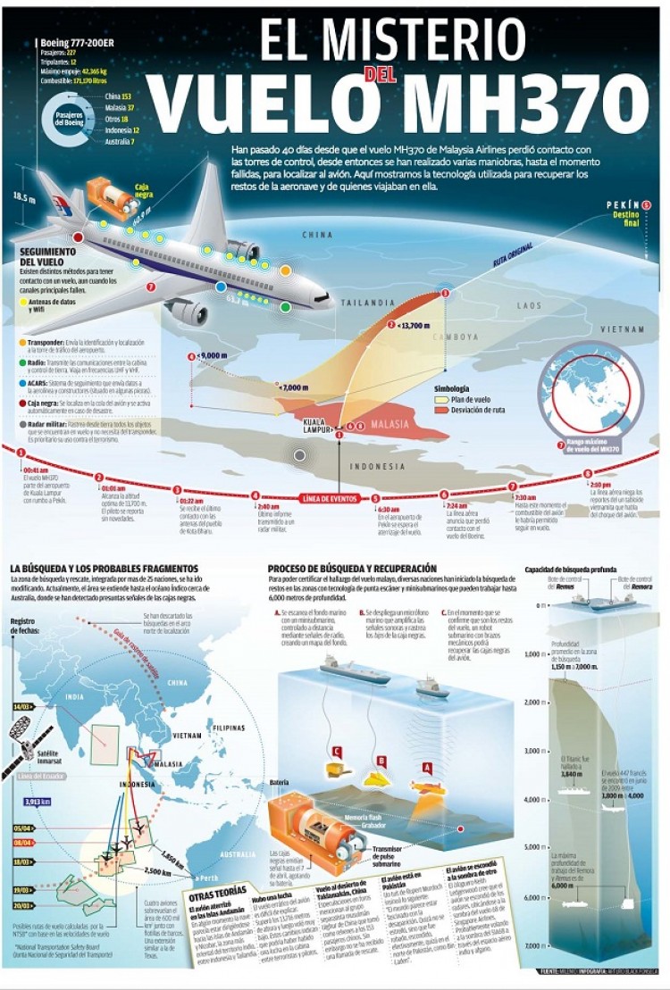 El equipo de expertos internacionales dirigido por Malasia para dilucidar este caso publicó su informe anual provisional, pero sus breves informaciones no aportan ninguna indicación a los devastados familiares de las víctimas sobre las circunstancias de la desaparición del aparato."Hasta hoy, no se han encontrado los restos del MH370 pese a la continua búsqueda en el sur del océano Índico", recuerda el informe.Por segundo año consecutivo los investigadores no son capaces de revelar algún elemento que permita descifrar el misterio.Australia y Malasia aseguran no obstante que no pierden la esperanza de hallar rastro del avión."Las operaciones de búsqueda en curso deben terminar este año, y conservamos la esperanza de que el MH370 será hallado", declaró el primer ministro de Malasia, Najib Razak, en un comunicado.En el caso de que estas búsquedas en el Indico no den resultado, Malasia, Australia y China -153 de los 239 ocupantes eran chinos- van a reunirse para "determinar el camino a seguir", añadió.El vuelo MH370 que se dirigía a Pekín desapareció el 8 de marzo de 2014, oficialmente después de haber caído en el océano Índico. El caso es hasta el día de hoy el mayor misterio de la historia de la aviación moderna.Australia dirige las investigaciones en el sur del Índico, en las profundidades de una zona de 120 mil kilómetros cuadrados, equivalentes a la superficie de Nicaragua. Se trata de las mayores y más caras búsquedas de este tipo en toda la historia."La búsqueda proseguirá en los días y les meses venideros en los 30 mil kilómetros cuadrados restantes, y Australia, Malasia y China esperan que el avión será encontrado", declaró en un comunicado el ministro australiano de Transportes, Darren Chester. "Sufrimos día y noche""Hallar el avión permitiría dar respuestas a todo el mundo, en particular a las familias que han perdido a seres queridos", añadió el ministro.En Pekín, más de 20 familiares de las víctimas se congregaron en un templo budista para rezar, y leyeron una declaración exhortando a que no se interrumpan las búsquedas. "Desde la desaparición del MH370, nosotros, miembros de las familias, sufrimos día y noche, y cada día pasa como si fuera un año", indican también en esta declaración. Pero los esfuerzos por localizar los restos del avión han sido hasta ahora infructuosos, y a falta de nuevas pistas las autoridades tienen previsto concluir sus operaciones en julio.Las especulaciones sobre las razones de la desaparición se centran en torno a un fallo mecánico o estructural, a una toma de rehenes o un acto terrorista, pero nada ha venido hasta ahora a apuntalar una u otra hipótesis. El misterio también ha alimentado múltiples teorías conspirativas.De momento, un fragmento de ala hallado en julio pasado en la isla francesa de La Reunión, en el Índico, y que pertenecería según las autoridades francesas y malasias al Boeing 777 de Malaysia Arlines, es la única prueba de que el avión se estrelló. Pero este elemento no ha aportado ninguna respuesta a las circunstancias de la desaparición.Otros dos restos han sido hallados recientemente, pero aún deben ser analizados para determinar si proceden del avión que operaba el vuelo MH370. Plazo para una querellaEl segundo aniversario es asimismo el plazo máximo para interponer una querella contra una compañía aérea tras un accidente.Varios familiares y allegados de las víctimas han interpuesto demandas contra Malaysia Airlines estos últimos días en Estados Unidos, Malasia, China, Australia y otros países, mientras otros han aceptado transacciones por vía amistosa, según los abogados. También fue interpuesta una querella contra Boeing en Estados Unidos.Muchos de los familiares y allegados acusan a la compañía aérea y al gobierno malasio de esconder información sobre este drama, y alegan haber sido maltratados, lo que los interesados niegan.Fuente: Noticias Argentinas