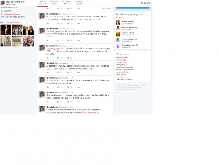 La titular de la Oficina Anticorrupción, Laura Alonso, explicó este miércoles su cambio de opinión sobre la confidencialidad del acuerdo de YPF con Chevron, al sostener que se informó "mejor" después de haber cuestionado duramente al Gobierno anterior por lo que ahora ella respalda.Reconoció la funcionaria que cuando era diputada entre los años 2013, 2014 y 2015 y fustigaba el entendimiento entre las petroleras no sabía del tema ni tenía la información suficiente para tomar una posición crítica, por lo que -admitió- no tenía fundamentos válidos."Me informé mejor sobre el contrato YPF-Chevron y por eso cambié de opinión", dijo la funcionaria macrista en un picante cruce con un periodista de Radio Continental, al defender la decisión de permitir que parte del acuerdo entre las petroleras permanezca en secreto.El 17 de julio de 2013 a las 6.52, la entonces diputada escribió en su cuenta de Twitter: "Buen día. Secreto no es la regla en democracia. El acuerdo con Chevron empieza mal: no es público. Corre frío por la espalda, ¿no?".Luego, mantuvo una posición muy crítica de la gestión del gobierno en la empresa petrolera que fue recuperada por el Estado en 2012, lo que le valió una serie de cruces declarativos con Aníbal Fernández, el último jefe de Gabinete de la expresidenta Cristina Kirchner."¿Por qué es bochornoso tomar información, aceptar que hay una visión distinta y modificar una opinión?", se preguntó la funcionaria en la entrevista al defender que ahora piensa que YPF no debe dar a conocer el contrato con Chevron, tras el pedido en la Justicia del diputado santafecino Rubén Giutiniani.La Corte Suprema de Justicia ordenó el 10 de noviembre pasado a la estatal YPF hacer públicas todas las cláusulas del acuerdo con la firma estadounidense por la explotación de hidrocarburos en Vaca Muerta, en la provincia de Neuquén.El máximo tribunal falló ante una acción de amparo presentada por el entonces senador socialista Rubén Giustiniani, luego de que YPF se negara a aportar precisiones del acuerdo, en especial sobre la calidad ambiental y las actividades que desarrollará Chevron en el lugar.   Ahora, Alonso pide "tener conciencia de qué compañía es YPF y cómo funciona el negocio del petróleo en el mundo. Los contratos de petroleras tienen cláusulas de confidencialidad en los países más trasparentes del mundo".Indicó la funcionaria que las excepciones están previstas en toda la legislación internacional en materia de acceso a la información pública, porque hay secretos comerciales, científicos y tecnológicos que deben ser resguardados para favorecer las inversiones y el desarrollo de algún tipo de industria.    "Es como pedirle a Coca Cola que haga publica su fórmula. El daño irreparable que le puede generar a YPF que además es una compañía que cotiza en la Bolsa de Nueva York y está sometida a regulación internacional de transparencia, me parece que podría ser grave", dijo Alonso.Y consideró que ella podría "no haber hecho nada" y haber mantenido su posición original, pero aclaró que cambió porque "probablemente antes no tenía la suficiente información"."Les pido muchas disculpas a todos públicamente", dijo.Fuente: Agencia de Noticias NA