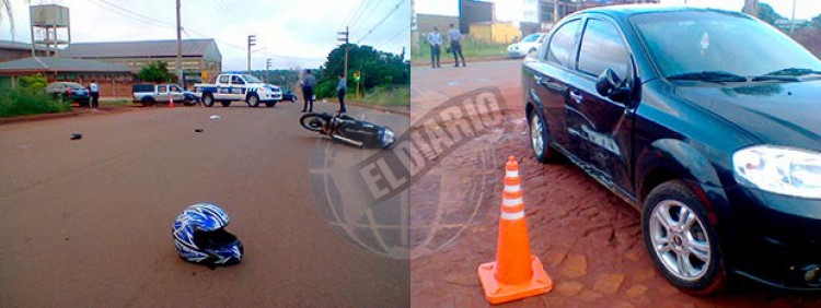 Sucedió esta mañana cuando un hombre de 39 años se trasladaba en su moto Gilera 110cc, hacia el centro posadeño, cuando por razones que se tratan de establecer impactó contra el Chevrolet Aveo que se dirigía hacia el sur. A raíz del impacto el conductor del rodado menor sufrió lesiones por lo que fue derivado al nosocomio local y se produjeron daños materiales en ambos vehículos.Por cuestiones de jurisdicción intervino en el lugar personal de la Comisaría Octava y de la División Criminalística de la UR-X.