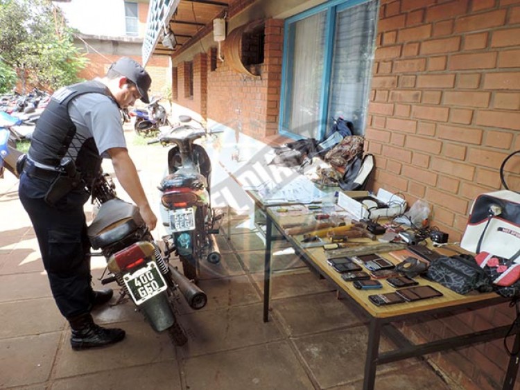 Efectivos de distintas dependencias policiales, coordinados por la Unidad Regional I y con intervención del juzgado de Instrucción Nº 1 de Posadas, realizaron esta mañana un amplio operativo en la chacra 159 de Posadas, sector comprendido entre las avenidas Tambor de Tacuarí, Centenario, Jauretche y Vivanco.Por disposición del magistrado interviniente hubo allanamientos simultáneos que concluyeron con las detenciones de Juan B. (37), Nelson C. (18), Hernán C. (21) y tres menores 16 años, uno de ellos con antecedentes delictivos.Todos estarían relacionados en causas de robos y hurtos denunciados recientemente.En ese marco, y en averiguación de sus procedencias, fueron secuestrados dos motocicletas 110 cc, carteras, bolsos, billeteras, teléfonos celulares, herramientas y la suma de 600 pesos. Entre lo incautado hay documentaciones varias, a nombre de personas residentes en distintos puntos de la capital misionera, tratándose de establecer si se trata de damnificados en hechos delictivos.