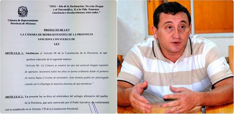 Mediante un proyecto de ley, diputados de varios bloques proponen que la Cámara de Representantes sesione del 1º de marzo hasta 30 de noviembre de cada año.El diputado Victor Kreimer (Trabajo y Progreso), acompañado por su par de bancada Claudio Wipplinger y los legisladores Gustavo González y Mario Pegoraro (UCR), Alfredo Schiavoni, Alba Nilsson, Jorge Ratier (PRO), Héctor “Cacho” Bárbaro, Martín Sereno, Miryam Duarte (PAyS), Darío Pietrowski (FPV) y Silvia Rojas (CET) han presentado un proyecto de ley que busca ampliar a 9 meses por año el período de sesiones ordinarias de la Cámara de Diputados de Misiones.Según lo expresan en los fundamentos, el período que rige actualmente (del primero de mayo al treinta y uno de octubre), “puede haber sido apropiado al momento histórico en que se estableció, a las posibilidades de traslado y comunicaciones de esa época, pero claramente hoy se impone la necesidad de adecuarlo y extenderlo”, manifestaron.Al respecto, Kreimer señaló que “debemos buscar mejorar la producción legislativa, el trabajo que le ofrecemos a los misioneros y, sin lugar a dudas, será positivo disponer de más tiempo, más sesiones y más trabajo en las comisiones”.Dado que la propuesta implica la modificación de un artículo de la Constitución, se ajusta a lo establecido en su Art. 178 para los procesos de “enmienda legislativa” y, en caso de ser aprobada en la Cámara, luego deberá ser ratificada con el voto afirmativo del pueblo de la provincia. Hubo en ocasiones anteriores propuestas parecidas de las bancadas de la oposición para extender el tiempo de trabajo pero el bloque mayoritario del Frente Renovador se negó sistemáticamente a ceder a este proyecto.