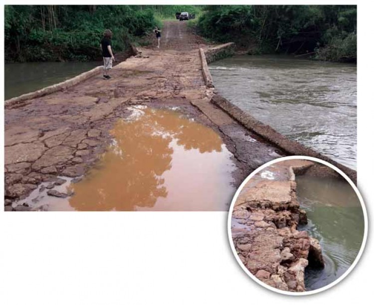 “El deterioro del puente es notable y constituye un riesgo; las barandas son inexistentes. El cordón que tenía a un costado se cayó y una parte de las cabeceras está bastante destruida, casi desmoronándose", describió Roberto un vecino del Paraje Yapeyú sobre el problema de aislamiento que tienen cada vez que llueve en la zona.El paso se ha venido deteriorando con los recientes temporales y no da para más, sin embargo el reclamo por un puente nuevo a los Municipios de Mojón Grande y Gobernador López ya lleva dos años sin que ninguna de esas reparticiones se quiera hacer cargo “por una cuestión de jurisdicción”, señaló el hombre.Roberto resumió: “Le corresponde a Gobernador López, porque estamos en el límite entre ese pueblo y Mojón, aún cuando en el momento de arreglar el puente es tierra de nadie”. Según la descripción del vecino cada vez que ocurre un temporal en la zona, a la media hora el arroyo se desborda, "y si sigue lloviendo, sube generalmente dos metros más arriba que el puente. Todos los que somos de Yapeyú quedamos aislados, y si hay que salir por alguna emergencia, tenemos que hacerlo por Colonia Guaraní, porque no hay salida por Leandro N. Alem, por Gobernados López ni por Mojón Grande”. A fines de febrero se solicitó al presidente de Vialidad provincial, Alberto Stelatto, la reparación inmediata del puente sobre el arroyo El Persiguero, ya que esta situación obliga a los residentes a trasladarse grandes distancias hasta llegar a un centro asistencial. Todavía no hubo respuesta.