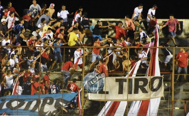 Ir perdiendo un partido como local por una sucesión de errores desde la primera etapa, el poco o escaso funcionamiento del equipo, la falta de apoyo a la actual dupla técnica y la eterna pelea de facciones por un lugar privilegiado en la tribuna César Napoleón Ayrault fueron un "combo explosivo" que detonó a los 39 minutos del segundo tiempo del sufrido <a href="http://www.primeraedicion.com.ar/nota/216231/guarani-rescato-un-punto-en-el-ultimo-suspiro.html">Guaraní Antonio Franco 1 – Sol de América de Formosa 1 disputado este domingo en Villa Sarita</a>. En ese instante, dos facciones se trenzaron a golpes de puño en pleno partido y la escaramuza pasó a ser generalizada con caídas, golpes y corridas, a tal punto que el árbitro Nahuel Viñas decidió suspender el partido en forma momentánea.La riña generalizada fue en aumento, hasta que la Policía -en forma tardía- decidió intervenir y realizar un fuerte cordón en medio de la tribuna para que se calmen los ánimos.Luego de que los inadaptados se calmaron y se disiparon el partido pudo continuar.Partido suspendidoPero no fue el único episodio bochornoso de la fecha, al punto que lo de Guaraní quedó casi como anécdota en comparación con lo ocurrido en Pergamino, a partir de la agresión al juez de línea Saccone que motivó la suspensión del triunfo parcial de Almagro frente a Douglas Haig por la <a href="http://www.primeraedicion.com.ar/nota/215892/asi-esta-ahora-la-primera-b-nacional.html">séptima fecha de la Primera B Nacional</a>.Los hinchas locales, enojados por la actuación del línea, empezaron a arrojar proyectiles sobre él, uno de los cuales impactó sobre su humanidad y llevó a la terna arbitral encabezada por Ramón Guaymas a suspender el juego.Clásico calienteUn grupo de dirigentes y futbolistas de Gimnasia y Esgrima de La Plata que no fueron convocados para el clásico frente a Estudiantes se enfrentaron a golpes de puño en la zona de palcos del estadio Ciudad de La Plata, tras la derrota del equipo por 3-0.Los directivos habrían cuestionado duramente la actuación de los futbolistas que Pedro Troglio puso en el campo de juego, por lo que los integrantes del plantel salieron a defenderlos enfáticamente.Entre los futbolistas estaban Lucas Leiva, Juan Ignacio Silva, Manuel Guanini, Nicolás Contín y Valdez Chamorro, entre otros, a quienes se vio en un video que circuló por Internet.El medio partiario "Letra G" informó además que de los incidentes participaron integrantes de la Comisión Directiva del club.Fuentes: PRIMERA EDICIÓN y Noticias Argentinas