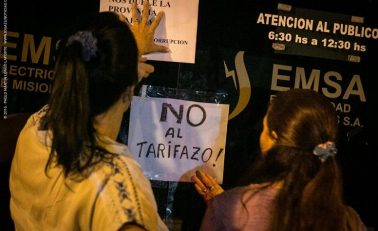 Bajo el lema "No al Tarifazo", vecinos de varias localidades misioneras se manifestarán una vez más este lunes por los desmedidos aumentos aplicados al precio del suministro de energía.Las primeras protestas fueron en San Javier y Posadas, luego se agregó Jardín América y para hoy se prevé que también habrá reclamos en Puerto Iguazú y Garupá, desde donde se realizará una caravana para sumarse a la manifestación central, en la plaza San Martín de la capital provincial a partir de las 20, donde continuarán recolectando propuestas para presentar ante las autoridades provinciales. En Jardín América realizarán una asamblea en la plaza Colón a partir de las 19 y se estima que también podría haber movidas similares en?Eldorado y Puerto Esperanza. (LEA MÁS DETALLES EN LA EDICIÓN IMPRESA DEL LUNES 14 DE MARZO)