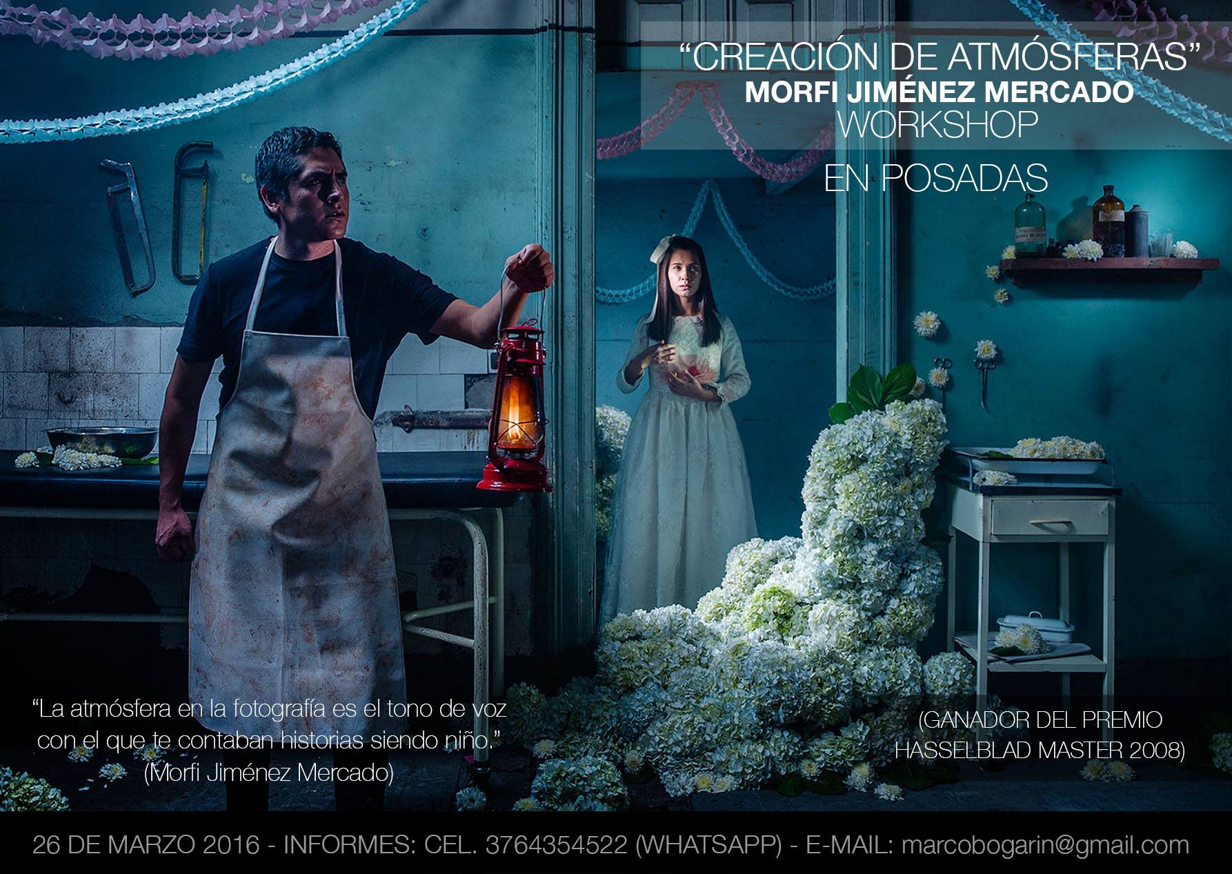 Si consideramos que la fotografía es el arte de captar la luz en un instante determinado, el dominar la iluminación de una escena nos brinda la posibilidad de alcanzar resultados magistrales.Bajo el nombre de “Creación de atmósferas”, el taller está orientado al alumno avanzado y profesionales de foto y video, siendo de gran utilidad, por ejemplo, para fotógrafos de modas que deseen llevar su trabajo un paso más allá, o todo aquel artista creativo que ya tiene un manejo promedio de la luz pero desea profundizar en ella.Una misma escena puede hacernos sentir cosas diferentes dependiendo de factores como la expresión de los personajes, el maquillaje, el decorado, vestuario e incluso la ambientación sonora (como en el cine), pero por encima de todo, la iluminación es la principal responsable de la carga dramática de una escena. A esto se refiere la “atmósfera”, y es la gran responsable de la conexión entre el publico y la imagen.De esta manera, el Workshop consistirá en la creación de atmósferas en locaciones reales (fuera de un estudio), a partir de múltiples elementos como flashes, luces continuas, humo y diversos accesorios, obteniendo así imágenes dramáticas, impactantes y complejas, dotándolas así de un gran realismo. Fecha: 26 de marzo de 2016.Lugar: Posadas – Argentina.Duración: 9 horas.Cupos limitados. Taller presencial de una jornada completa. Informes: [email protected] / whatsapp: 3764354522 / inbox Quién es Morfi JiménezNacido en Lima (Perú) en 1976, Morfi se define como un retratista autodidacta, pero con estudios de Publicidad y Cine. Su primer contacto con la fotografía fue en 1997 como practicante de reportero gráfico en un diario de Lima, adquiriendo practica en el laboratorio, copiando y revelando fotos en blanco y negro, posteriormente se dedicó a la fotografía de eventos durante mas de tres años, hasta que descubrió de manera autodidacta diversas técnicas de iluminación. La vida cotidiana y el comportamiento humano y su entorno han sido desde el comienzo el eje principal de su trabajo. Prueba de ello son sus series “ Luz de las Entrañas” (2007-2008 ) y “ La gran comedia de la vida” (2010 -2014).Sus imágenes están marcadas por un estilo muy intimista donde el acercamiento al personaje y el manejo de la luz son su sello característico ,otorgando a sus retratados un halo de atemporalidad. Su trabajo ha sido exhibido en diversos festivales e instituciones en diversos lugares como Francia ,Italia ,Croacia, Polonia, EEUU, India, España, Argentina ,entre otros.Además de la fotografía editorial , retratos comerciales y corporativos trabaja en diversos proyectos paralelos , entre ellos, dirige junto a otros fotógrafos desde el 2011 el proyecto Verte MirArte donde se busca incentivar el desarrollo creativo de un grupo de niños de la localidad de Villa María del Triunfo en Lima a través de la fotografía estenopeica o pinhole. Reconocimientos:2015 – Ganador de 2 leones de bronce en el Festival Cannes Lyons por su trabajo publicitario. Francia.2012 – Ganador del primer puesto en retrato del Premio Latinoamericano de Fotografía. Buenos Aires.2011 – Ganador del segundo puesto en el premio Repsol Lima Photo. Lima2009 – 2010 Seleccionado por Photo España dos años consecutivos. Madrid , Cartagena de Indias2008 – Ganador del Hasselblad Masters Award en la categoría retrato por su serie “Luz de las Entrañas”. Suecia2008 – Nominado por el Centro de la Imagen de Lima al premio Leopold Godowsky de la Universidad de Boston.2004 – Ganador del premio del Fondo de Población de las Naciones Unidas (FPNUD) . Lima