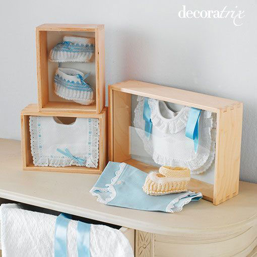 Si deseas hacer cambios y al mismo tiempo utilizar recuerdos de tus hijos piensa en cuadros. Añade detalles importantes, por ejemplo puedes adicionar una foto de tu hijo con esa ropa puesta o puedes mostrar los zapatos que hacían juego.Lava y plancha la ropa de bebé. Es muy importante que laves y seques exhaustivamente la ropa antes de que la enmarques. Incluso algo que no se ve, como la transpiración, puede arruinar la ropa con el tiempo. Plánchala y escoge un tipo de marco. Hay dos formas básicas de enmarcar ropa de bebé. Es más una elección personal basada en la apariencia deseada de la exhibición, sin embargo, también debes tomar en cuenta el grosor de la misma.La primea forma es usar un marco de fotografías. Este método se puede usar para ropa muy pequeña o delgada. Si se elige este método para enmarcar ropa de bebé muy grande, sólo una parte de ella será visible. La ropa muy gruesa tampoco va bien con este método pues estará muy abultada cuando se doble para entrar en el marco. Otra forma de enmarcar la ropa de bebé es usar un marco expositor con el frente de vidrio. Esto mostrará el frente completo de la prenda e incluso puede usarse para mostrar un atuendo entero. Es el mejor método para enmarcar ropa de bebé que es gruesa y difícil de doblar. Al usar este método, debes decidir qué vista o parte de la ropa quieres exhibir.Por ejemplo, al enmarcar una camisa, las vistas preferidas son el frente o la espalda de la misma, dependiendo de los diseños o imágenes que tenga la prenda.Escoge un marco del tamaño adecuado. La mejor manera de saber qué tamaño se necesita es doblar las mangas u otras partes de la camisa (o prenda) para hacer un rectángulo en el que sólo se vea la parte deseada. Luego tendrás que medir los bordes de la prenda doblada. Estas medidas deben coincidir aproximadamente con las medidas del vidrio que es visible.Es importante que no uses las medidas exteriores del marco porque hacerlo causaría que una parte de la ropa quede escondida detrás de los bordes.Compra una sección de tablero de respaldo mate de una tienda de artesanías. La prenda debe desdoblarse y volverse a doblar al rededor del tablero de respaldo de tal forma que la vista deseada esté centrada en el tablero.Si no encuentras un marco del tamaño exacto, lo mejor será escoger uno un poco más grande y doblar la prenda para que la parte a exhibir sea de ese tamaño.Sujeta la prenda al tablero de respaldo, puedes hacerlo cosiéndola o usando alfileres para evitar que se deslice o se caiga dentro del marco. No es recomendable usar cinta u otros adhesivos ya que pueden desteñir o dañar la prenda. Una vez que la prenda esté sujeta al tablero de respaldo puedes insertarla cuidadosamente en el marco y luego colgarla en la pared.Considera el exhibir sombreros o artículos pequeños, para esto puedes usar un marco de fotografía.Si la prenda que quieres enmarcar es un sombrero o un artículo pequeño difícil de doblar en forma de rectángulo, puedes centrar la prenda en medio del tablero, el cual servirá como fondo.www.mihijoesmitesoro.com