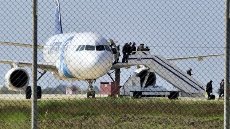Un pirata aéreo desvió este martes un avión de la compañía EgyptAir hacia el aeropuerto chipriota de Lárnaca antes de liberar a casi todos los pasajeros, un secuestro que según Chipre "no está relacionado con el  terrorismo".   El ministro egipcio de Aviación civil, Cherif Fathy, afirmó que el pirata seguía reteniendo a bordo a siete personas: tres tripulantes, un oficial de seguridad y tres pasajeros.   Según el presidente chipriota, Nicos Anastasiades, el secuestro "no está relacionado con el terrorismo".   A bordo del A-320, que cubría la ruta Alejandría-El Cairo, viajaban 81 pasajeros, además de la tripulación, según fuentes egipcias.   Tras el aterrizaje del avión en Chipre, y la liberación sin incidentes de la mayoría de los pasajeros, el secuestrador pidió ver a su exesposa chipriota, según una fuente gubernamental chipriota. La mujer fue conducida al aeropuerto, acompañada por un niño, según la cadena de televisión chipriota Sigma.   Interrogado sobre esta demanda, el presidente chipriota dijo: "Siempre hay una mujer".   El secuestrador es de nacionalidad egipcia, según una fuente gubernamental chipriota, pero un portavoz de la Aviación Civil egipcia interrogado por la AFP dijo no estar en medida de decir si era "libio o egipcio, ni confirmar su nombre".   Según un representante del sindicato del personal de vuelo, Osama Abdel Baset, los miembros de la tripulación "se niegan a dejar el avión mientras no hayan sido liberados todos los pasajeros".   De los 81 pasajeros, 21 eran extranjeros: ocho estadounidense, cuatro británicos, cuatro holandeses, dos belgas, un francés, un sirio y un italiano, anunció el ministerio de la Aviación Civil egipcio.   Según la radio pública chipriota, el pirata aéreo también había pedido asilo en Chipre.Las autoridades aeroportuarias chipriotas anunciaron el cierre del aeropuerto internacional de Lárnaca, situado en el sur de esta isla, y desviaron los vuelos hacia el de Pafos (oeste).   Según el ministerio de la Aviación Civil egipcio, el piloto del avión explicó que "un pasajero aseguró disponer de un cinturón de explosivos y lo obligó a aterrizar en Lárnaca".   El pirata aéreo había tomado contacto con la torre de control del aeropuerto chipriota a las 8.30 (2.30 de Argentina) y el avión fue autorizado a aterrizar a las 8.50, según al policía chipriota.   El aparato fue aislado en la pista del aeropuerto, lejos de la terminal.Fuente: Agencia de Noticias AFP/NA