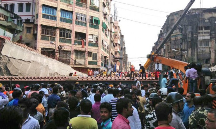 Equipos de rescate buscaban este jueves entre los grandes fragmentos de un puente que se derrumbó a media construcción el jueves, matando a 14 personas e hiriendo a docenas, según las autoridades.Un tramo de la estructura en la bulliciosa zona residencial y comercial de Bara Bazaar, en el centro de Kolkota, se derrumbó sobre los vehículos y la gente que pasaban debajo, atrapando a la gente en sus autos, camiones y bicitaxis."<a href="https://twitter.com/khalidkhan787?ref_src=twsrc%5Etfw">Escuchamos un potente ruido sordo y después vimos mucho polvo en el cielo</a>", dijo un testigo al canal NDTV.Efectivos de la Fuerza Nacional de Respuesta a Desastres (NDRF, por sus siglas en inglés) se unieron a los esfuerzos por sacar a la gente de los vehículos que habían quedado bajo enormes bloques de concreto y metal. En el lugar se desplegaron grandes grúas y otros equipos de rescate para asistir a las tareas. Otros trabajadores utilizan cortadores a gas para intentar abrirse paso.Más de 70 heridos fueron evacuados a dos hospitales de la ciudad, la capital del estado de Bengala Occidental, según fuentes médicas. Al menos 14 personas murieron."La zona estaba muy, muy concurrida. Bicitaxis motorizados, taxis (…) había mucho tránsito", dijo uno de los testigos a la televisora de Nueva Delhi, NDTV.Imágenes de televisión mostraban las piernas ensangrentadas de algunas de las personas atrapadas, sobresaliendo entre los hierros y losas de concreto derrumbados.Mamta Banerjee, la representante electa más alta del estado, visitó la escena y dijo que la constructora privada había incumplido varios plazos para completar la obra.El contrato para el paso elevado se firmó en 2008 y se esperaba que se completara en dos años. Banerjee acusó al anterior gobierno comunista de Bengala Occidental de no haberse adscrito a las regulaciones de construcción.Los derrumbes de edificios son habituales en India, donde los constructores emplean materiales precarios y no aplican las leyes vigentes, según medios locales.Fuente: Medios Digitales