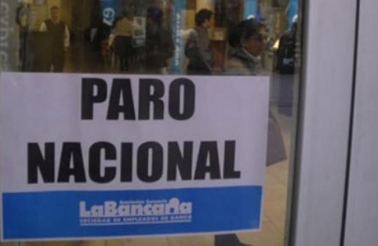 La Asociación Bancaria (AB) ratificó para este jueves la realización de un paro nacional de actividades en todo el sistema financiero en reclamo de mejoras salariales y la reincorporación de trabajadores despedidos en los bancos Central y Provincia.La medida de fuerza fue ratificada a través de un comunicado suscripto por el secretario general de la organización, Sergio Palazzo, y el de prensa, Eduardo Berrozpe, titulado "Ante el ajuste, el aumento del costo de vida, los despidos y la mentira".En el texto se detalla que "el martes 12 de abril, como lo habíamos previsto, nada cambió en la posición patronal en el Ministerio de Trabajo en la reunión paritaria efectuada"."Los bancos privados nucleados en Adeba, ABA y ABE -añade- insistieron en una propuesta insuficiente que no tiene en cuenta la devaluación y el alza brutal de precios que se desató, ni el tarifazo ni el incumplimiento del compromiso electoral de derogar el impuesto al salario, ni las estimaciones sobre inflación realizada por las propias entidades".Con respecto a la banca pública, el gremio informó que "Abappra, junto al Banco Central, no presentaron propuesta alguna.Tampoco hubo definición positiva en relación a las reincorporaciones reclamadas en los Bancos Central y Provincia, ante despidos por evidente revanchismo que no corresponden, tanto porque violan la Constitución nacional y leyes vigentes, como por la tarea efectivamente desempeñada por estos 56 trabajadores".La ‘Bancaria’ ratificó así el paro por 24 horas para este jueves en todos los bancos del país, convocando a los trabajadores a realizar manifestaciones en las principales plazas financieras, mientras que en el banco Provincia el paro será de 48 horas y no operarán durante jueves y viernes.Fuente: Agencia de Noticias Télam