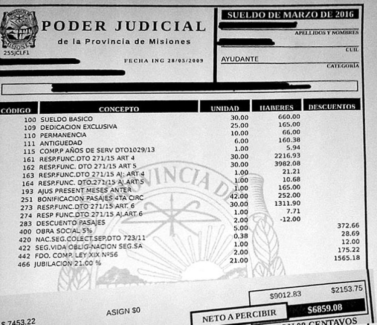 Centenares de empleados del Poder Judicial de Oberá, Eldorado y Puerto Rico se declararon en estado de alerta y asamblea permanente “por los bajos sueldos” y la inacción gremial. Se manifestaron a través de una nota firmada por cientos de trabajadores.Denuncian, por ejemplo, que un empleado “de las más bajas categorías con siete años de antigüedad, percibe en la actualidad de bolsillo 6.859 pesos, desde julio de 2015”.“Esta situación coloca al empleado judicial en el abultado grupo de indigentes, que ya cuenta gran parte de Misiones y del país. Vista la inflación galopante que nos golpea día a día, a ritmo de 100, 200 y 300%, con la imperante pérdida del poder adquisitivo”, denuncian.Luego se preguntan “¿cómo podremos subsistir así? ¿cómo podemos brindar un servicio de justicia de calidad de esta manera, en estado de indigencia y pobreza total?”.Además, recordaron que los empleados del Poder Judicial, por Reglamento, “no podemos ejercer ninguna otra actividad fuera del juzgado sin poder buscar algo más para la olla de nuestros hijos. Por este rubro irrisorio de ‘dedicación exclusiva’, se perciben $165”.Abandono gremial“En el Poder Judicial de Misiones existe un gremio: la Unión Judicial Misiones, que es ajena a los reclamos por una mejora salarial de sus afiliados (la UJM se alió con la cúpula del Gobierno y dejó de lado los reclamos para sus afiliados); y se limita solamente a cobrar la cuota societaria y a disponer de la plata de los afiliados a su antojo ya que no rinde cuenta, no presenta balances, no llama a asamblea, no llama a reuniones gremiales y tampoco participa de ninguna paritaria salarial”, denunciaron en el escrito presentado a los medios.Y recordaron que la UJM “hasta la fecha sigue sin rendir cuentas a sus afiliados. Ningún fiscal se animó a investigar a la cúpula de la UJM. Mucho menos cuentan con el apoyo de la superioridad ya que no hay ningún incentivo desde el Superior Tribunal de Justicia”.En el reclamo concreto, los empleados enumeran: “1) Una inmediata recomposición salarial de los empleados del Poder Judicial de Misiones, acorde al ritmo galopante de la inflación; 2) Blanqueo de los sueldos; 3) Urgente investigación de la UJM por supuesta malversación de fondos e inacción en la defensa de sus afiliados; 4) Apoyo del Superior Tribunal de Justicia; 5) Que los ingresos al Poder judicial sean por concurso y no por política y acomodo; 6) Que se permita a los empleados a hacer una carrera judicial otorgándoles los ascensos que se merecen por sus méritos laborales; 7) Se invite a los compañeros de Posadas a adherir al reclamo”.Pedido antiguoEl 14 de abril del año pasado, hace casi exactamente un año, PRIMERA EDICIÓN publicó un reclamo del mismo tono encabezado por tres valientes empleados judiciales del interior. En aquel momento denunciaban “sueldos de miseria y acomodos” con un gremio ausente. La situación, al parecer, no cambió nada, hasta se podría decir que empeoró.“Infraestructura obsoleta y desbordada, personal insuficiente y sin capacitación porque ocupa cargos por acomodos políticos y no por formación; sueldos miserables y en negro; un gremio ausente y el poder político que “mete la cuchara” donde no debe”, se redactó en aquella nota periodística, considerado un llamado “desesperado para que la sociedad sepa la situación miserable en la que se encuentra el Poder Judicial provincial”.Héctor Adolfo Yung (con 39 años de antigüedad), Atilano Villamayor (27 años de antigüedad) y Julio Argentino de los Santos (30 años) fueron los voceros del reclamo en aquel entonces. “Esta comisión directiva (encabezada por Arcadio Lewin) no hace nada por los empleados judiciales, están acomodados con el Gobierno y en un tiempo en el que los distintos gremios están consiguiendo mejoras salariales, nosotros estamos estancados”, denunciaron el año pasado.Hoy la situación es parecida. Desde el año pasado no hay paritarias y en el cuarto mes del año, con una inflación que se devora los salarios, todavía no hay “ni noticias de paritarias”, enfatizaron.Ni hablar del porcentaje salarial en negro, que supera el 70% de cada ingreso. De Los Santos explicó también que él integraba la lista ganadora de la última asamblea con el cargo de secretario de Deportes y Recreación, sin embargo, nunca fue convocado para asumir, en clara actitud irregular de la conducción gremial.