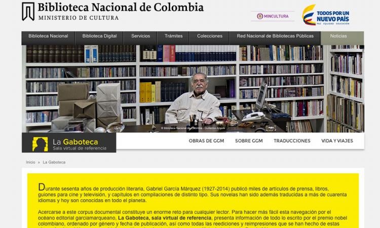 Este inmenso catálogo virtual fue presentado en Bogotá en ocasión del segundo aniversario de la muerte del autor de "Cien años de soledad", el 17 de abril de 2014.El portal se divide en cuatro grandes categorías: las obras de "Gabo", sus traducciones, los libros publicados sobre él y una sección sobre la vida y los viajes del creador del mítico pueblo de Macondo."La Gaboteca", disponible en el sitio web de la Biblioteca Nacional (BN) (www.bibliotecanacional.gov.co/lagaboteca), se trata, según la institución, del "primer efuerzo (…) en la red por ordenar y presentar el inmenso corpus bibliografico de Gabriel García Marquez al lector neofito y experto"."Todo lo que se produza sobre Gabo tendrá lugar en ‘La Gaboteca’", dijo Consuelo Gaitán, directora de la BN, precisando que ésta había recibido varias donaciones luego de la muerte del escritor, entre ellas "la medalla y el diploma" de su premio Nobel, ofrecidas por su viuda Mercedes Barcha, y que serán exhibidas en la sede de la BN.En "La Gaboteca", las obras están divididas en diez categorías (novela, cuento, periodismo, cine, memorias, poesía, teatro, prólogos, discursos, ensayos, entrevistas y diálogos), evidencia de la riqueza creativa y la diversidad de Gabo.Cada categoría remite al usuario al catálogo general en línea de la Biblioteca, donde los lectores e investigadores pueden consultar estas diferentes ediciones in situ en Bogotá.Gaitán dijo que en el sitio web hay "más de 1.500 materiales", entre ellos "600 libros con traducciones a 36 idiomas" de los 50 a los que ha sido llevada la obra de García Márquez.Sus escritos abarcan desde el primer libro publicado bajo su nombre en 1954, "Tres cuentos colombianos", hasta varias reediciones de sus obras desde su muerte a los 87 años de edad en Ciudad de México. Destacan algunas rarezas, como un guión que nunca llegó a la pantalla, "Viva Sandino", o discursos sobre educación pronunciados en Colombia.Según el curador del proyecto, Nicolás Pernett, que trabajó más de un año y medio para ordenar el material, "La Gaboteca" es "un lugar también para soñar y viajar con todo el legado de García Márquez (…) de conocer mucho más que su obra" porque "él tenía distintos sombreros (…) podía ser novelista, cuentista, periodista"."García Márquez es como un especie de retrato familiar de Colombia", dijo el historiador al invitar a conocer el universo literario del hijo del telegrafista de Aracataca, presentado en "La Gaboteca" en el contexto de su época de publicación y acompañada de grabaciones de lecturas, incluidas del propio Gabo.Entre las obras de "Gabo", ganador del Nobel en 1982, figuran todas las que están en los estantes de la BN, clasificados por temas (cine, mitos, biografías, etc.), pero también grabaciones de conferencias sobre el propio escritor durante la Feria del Libro de Bogotá de 2015, así como retratos realizados por el fotógrafo colombiano Nereo López, fallecido el año pasado en Nueva York.En la sección de las traducciones, que van desde el árabe hasta el coreano, pasando por el quechua y el catalán, la BN destacó "especialmente las hechas al francés y al alemán, por ser idiomas en los que se puede encontrar toda su producción y por ser dos lenguas en las que apareció su obra antes del éxito mundial de ‘Cien años de soledad’".Finalmente, en el capítulo "Vida y viajes", el internauta puede recorrer las diferentes ciudades de Europa, como Barcelona y París, por las que "Gabo" pasó, así como aquellas en las que residió, como Cartagena y Ciudad de México.