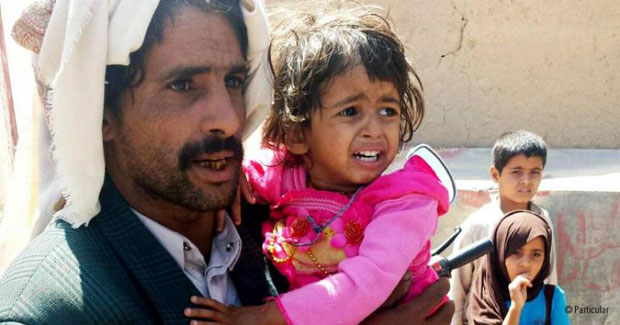 La devastación de Yemen, a un año del inicio de la guerra, ha dejado a casi la mitad de la población del país más pobre del mundo árabe en riesgo de hambruna. Y este es apenas uno de los efectos de un conflicto que ha hecho que Yemen retroceda décadas en su desarrollo.La guerra ha dejado unos 6.400 muertos, 2,5 millones de desplazados y, según datos de Naciones Unidas, alrededor del 80% de la población, unos 20 millones de personas, necesita ayuda humanitaria.El riesgo de malnutrición severa se ha duplicado en apenas doce meses y alrededor de 14 millones de yemeníes dependen de ayuda alimentaria.Y no sólo se trata del impacto que la guerra ha tenido en la producción de alimentos.Los precios de los productos de primera necesidad se han disparado debido al bloqueo comercial de Arabia Saudita. Esto en un país que importa el 90% de los alimentos que consume.No sorprende entonces que el riesgo de hambruna acose a casi la mitad de la población, según estimados de la ONU.Naciones Unidas resalta que la necesidad de ayuda alimentaria es urgente.Bettina Luescher, del Programa Mundial de Alimentos de la ONU, destaca que han tenido que reducir cada ración de alimento a un 75% de lo normal para garantizar que más personas coman.“Es un dolor intenso”Ahmed Sharif es un residente de la comunidad de Kawkaban, una ciudad antigua fundada en una colina.Sharif desciende de los restos de una edificación que hasta ahora había sobrevivido más de 1.400 años para mostrar a la BBC la destrucción causada por un bombardeo de aviones sauditas en febrero pasado.El hermano de Sharif fue una de las víctimas. “Es todo lo que quedó de él”, comenta señalando restos de ropa en los escombros.La ONU señala que la mayoría de los muertos civiles –unos 3.200- son víctimas de los bombardeos de la coalición liderada por Arabia Saudita.Un panel de la ONU acusó a los sauditas y sus aliados de bombardear objetivos civiles como escuelas, centros de salud, campamentos de desplazados y hasta eventos familiares, como bodas.Arabia Saudita ha dicho que hace todo lo posible por evitar objetivos civiles.Pero esto no es consuelo para víctimas como Abdel Bari Omar, a quien la enviada especial de la BBC, Orla Guerin, entrevistó en la capital, Saná.Bari Omar sobrevivió a un bombardeo en las afueras de la ciudad el mes pasado. El ataque lo dejó con el 40% de su cuerpo con quemaduras graves.“El dolor es tan intenso que sólo Dios lo puede saber. Cada vez que me muevo, es agonizante. Temo que el dolor me cause un ataque cardíaco”.Su otra preocupación es que sus hijos pasen a ser parte del 80% de la población que necesita de ayuda alimentaria, ahora que no puede ganar el sustento de su familia.Un conflicto olvidadoLa guerra, las muertes y la destrucción en los últimos doce meses en Yemen han recibido relativamente poca atención por parte la comunidad internacional. “Yemen ya era un país olvidado antes de que se intensificara el conflicto”, dice Van der Klaauw, funcionario de la Agencia de las Naciones Unidas para los Refugiados (ACNUR).Van der Klaauw cree que la crisis humanitaria allí no ha recibido la atención que merece porque los yemeníes no están migrando hacia Europa.“Es claro que la comunidad internacional, y en particular Europa, está movilizando más apoyo para los sirios e iraquíes porque están llegando en masa a sus costas. Si los yemeníes estuvieran haciendo lo mismo, habría más atención a la crisis en Yemen”, expresó el funcionario.Naciones Unidas ha apelado a la comunidad internacional para que otorgue fondos por valor de US$1.800 millones para garantizar alimentos, agua y ayuda sanitaria, pero hasta ahora sólo ha recaudado un 12% de esa suma.¿Cese el fuego?La ofensiva de Arabia Saudita y sus aliados busca restaurar al depuesto presidente Abed Rabbu Mansour Hadi y sacar del poder a los rebeldes chiítas hutíes que lo derrocaron.Riad sostiene que los hutíes son marionetas de Irán, su rival en la región. Se esperan nuevas conversaciones en este mes y un posible cese el fuego.Pero una eventual solución al conflicto llegaría muy tarde para personas como Mohammed, un niño que sufrió quemaduras graves cuando su casa fue objeto de un ataque de aviones sauditas. “Vi una bola de fuego y comencé a gritar. Mi abuelo y mis dos tíos murieron. Dios mediante, pronto podremos tomar venganza contra nuestros enemigos”.Mohammed tendrá que vivir el resto de su vida con las huellas de esta guerra.Fuente: BBC Mundo