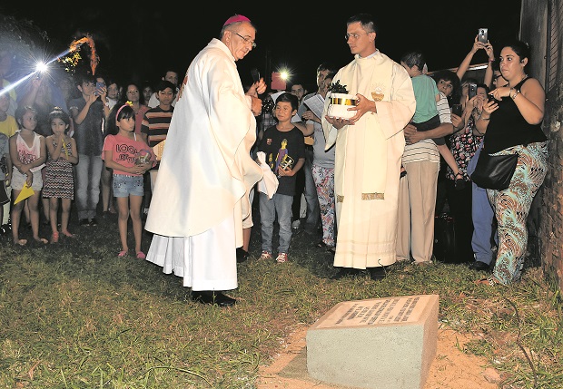 La colocación de la piedra fundamental de lo que será la primera capilla de adoración perpetua de la Diócesis de Posadas se realizó recientemente en el predio de la capilla Nuestra Señora de la Anunciación, en Santa Cruz y Franklin. Se presume que la obra estará concluida en un año y que al terminarse se convertirá en el tercer oratorio de la provincia, sumándose al emplazado en la ciudad de Oberá y a un segundo que se levanta en Puerto Iguazú.Esta misión es para el sacerdote Pablo Ptak, titular de la parroquia “Cristo Rey”, un doble desafío, tanto por lo que implica la edificación misma como por el compromiso pastoral que significa. Al referirse a la concepción de la idea explicó que “todo tiene su fuente en la Biblia, la palabra de Dios, cuando Jesús instituye la eucaristía el Jueves Santo y luego dice a sus Apóstoles que ni siquiera una hora podían permanecer junto a él”. Contó que en la sede de la “Cristo Rey” empezaron con la adoración de doce horas, los jueves de 8 a 20, hace tres años, pero que a partir de septiembre de 2015 la extendieron a 24 horas, inspirados un poco en las palabras del Papa Francisco que pedía que las puertas de las iglesias estén abiertas. “El motivo era abrir la puerta y exponer el Santísimo para que la gente pueda venir a adorarlo, para poder estar con Jesús. Tuvimos el deseo de perpetuar pero había que prepararse. Quisimos ver cómo funcionaba particularmente durante la madrugada porque durante el día no es tan difícil pero por la noche, cuesta un poco más”, comentó. Finalmente pudieron comprobar que los fieles participaban con mayor devoción durante la madrugada que durante el día. “Es algo interesante, algo que no me imaginaba”, confió.El lunes 4 de abril el obispo de la Diócesis de Posadas, Juan Rubén Martínez, bendijo la piedra fundamental de la capilla, que tendrá capacidad para unas 20 personas, unos pocos bancos y sanitarios. En la semana una empresa constructora se hará cargo de la obra, que se cree estará finalizada en un año y se levantará con dinero de colaboraciones depositadas en sede bancaria. “Me sorprende todo, tanto la cantidad de los adoradores de madrugada como la colaboración de la gente que aportó de manera muy generosa sabiendo que es para una buena obra. Es algo maravilloso”, dijo el joven sacerdote, que hace siete años llegó a Misiones proveniente de Polonia y tuvo a la localidad de Cerro Azul como primer destino. El proyecto de la capilla estuvo a cargo del reconocido arquitecto y profesor José Roberto Gassmann, quien le entregó su habitual toque de distinción, con materiales simples, sencillos y por sobre todas las cosas muy funcional a las necesidades de quienes serán los principales destinatarios del oratorio.Compromiso semanalConfió que necesitan 532 personas para que el oratorio funcione normalmente. “Cada hora, durante los siete días de la semana, tiene que haber dos personas, también por una cuestión de seguridad. No sólo la construcción es un desafío sino también el aspecto pastoral. Cada noche y cada día habrá una persona responsable de los horarios, un líder, que tendrá el número de teléfono de los adoradores. En caso que a uno se le presente algún inconveniente de último momento (enfermedad, vacaciones) tiene que avisar porque se debe buscar un reemplazo. Está muy bien organizado y de manera comprometida. Es algo serio. Un adorador se compromete una hora en la semana. Puede hacerlo más veces, pero con una hora ya sería suficiente”, sostuvo.Expresó que los adoradores no proceden solo de la “Cristo Rey” sino que también vienen de otras parroquias. “La idea es que esta capilla tenga la dimensión diocesana porque el lugar también es interesante. Queda en proximidades de la terminal de ómnibus, por donde circula mucha gente. Una persona que llega a la ciudad desde el interior de la provincia para hacer trámites o a cuidar a un enfermo, puede pasar por esta capilla. El propósito es que también otras parroquias se involucren pastoralmente. Los adoradores son muy generosos no sólo espiritualmente sino materialmente y domando su tiempo”, señaló. En el oratorio, donde el Santísimo estará expuesto de manera perpetua, cada uno podrá rezar por intenciones particulares pero lo importante es que sea en silencio. Ptak es el coordinador del proyecto pero como todo responsable “tiene un equipo. Sin el grupo no podría hacer mucho. Hay algunos de Nuestra Señora de la Anunciación; otros de la sede parroquial y queremos a ampliar a grupos de otras capillas. Sin ayuda de la gente no podría hacer mucho. Me siento que soy una parte de lo que pasa. Me alegra la cantidad de gente involucrada”, aseguró.Recordó que la iniciativa surgió “en el corazón de mucha gente que sólo que necesitaba empuje. Pienso que el deseo estaba latente aún antes de mi llegada”. A la jornada mundialPtak está emocionado porque junto a un grupo de su parroquia y de otros lugares de Posadas y del interior de la provincia volverá a su Polonia natal para participar de la XXXI Jornada Mundial de la Juventud que en julio tendrá lugar en Cracovia. “Somos 31 personas. La mitad jóvenes y otro tanto, mayores. Salimos el 10 de julio y pasaremos por Roma donde el miércoles 13 tendremos audiencia con el Papa Francisco en la plaza de San Pedro. Luego iremos a Polonia”, adelantó.“Voy a volver a mi tierra. Siempre era un sueño ir con los argentinos a mi patria para mostrar lo más lindo, y se dio la oportunidad”, dijo el sacerdote, que nació en Gubin, un pueblo de casi 20 mil habitantes, situado a unos 500 kilómetros de Cracovia.Fotos: La ceremonia de colocación de la piedra fundamental (M.Colman) y la maqueta de cómo será la capilla.
