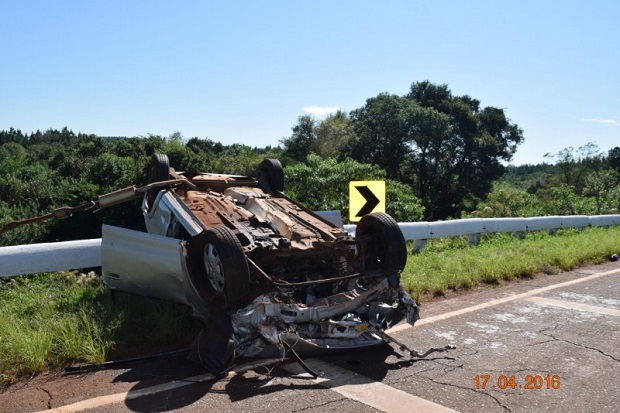 Tres integrantes de una misma familia resultaron con lesiones de diversa gravedad al despistar y volcar el coche en el que viajaban sobre la ruta provincial 7, en jurisdicción de Jardín América. El accidente se produjo a las 10:50 de este domingo a la altura del puente sobre el arroyo Tabay, cuando el conductor Ramón Barboza (60), acompañado por su pareja Clara Kassbug (43) y su hijo Alejandro Kassbug (23), perdió el control del Chevrolet Corsa Classic.Fotos: Policía de Misiones