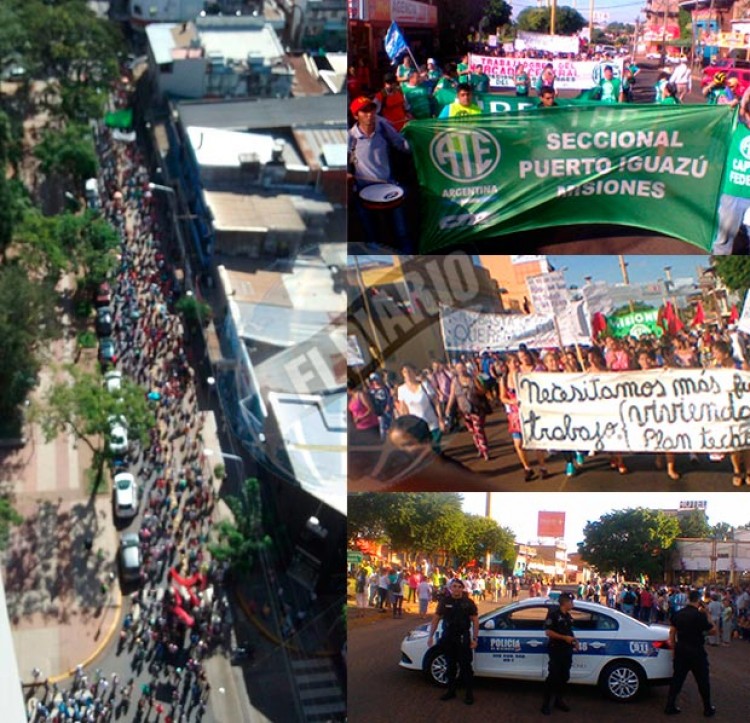 Más de mil personas se movilizaron el martes 19 por las calles de esta ciudad, desde la Rotonda hasta la plaza 9 de Julio donde realizaron un acto de protesta por el ajuste, los despidos, la inflación y la precarización laboral en el Estado.Jorge ‘Coki’ Duarte, secretario general de la CTA Autónoma en Misiones, sostuvo que “la gente está pasando hambre porque la situación ha empeorado mucho desde que empezó el año, con la suba de precios en todos los rubros, los despidos en el Estado y el sector privado y el retraso salarial”.“La respuesta ante esta situación es preocupante, las autoridades han volcado migajas para resolver algunos problemas de la gente” por eso “salimos a reclamar mayor respuesta y no únicamente vinculado a la situación salarial de los estatales, venimos a decirle al Gobernador, por si no sabe, que hay más de 30 mil trabajadores estatales que están bajo la línea de pobreza, venimos a contarle que una gran parte de ellos, cerca del 30% en la diferentes reparticiones están precarizados (trabajan con contratos sin relación, como becarios, etc.)”, señaló el titular de la CTA.La de ayer fue una de las movilizaciones más grandes de los últimos años de trabajadores estatales en Misiones. También participaron agrupaciones sociales y desocupados. Hubo delegaciones que se trasladaron desde el interior.Duarte remarcó que a nivel provincial, “el 25% (de aumento salarial) que ha otorgado el gobernador Hugo Passalacqua no nos permite recuperar ni siquiera lo perdido el año pasado por la inflación, la suba de precios y los tarifazos”.El secretario general de la CTA Autónoma en Misiones aseguró que es sumamente necesario cambiar el rumbo de las políticas, “tienen que estar de cara a la gente, la necesidad del pueblo es tremenda”.Asimismo, Leandro Sánchez, secretario general de la Unión de Trabajadores de la Educación de Misiones (UTEM), señaló que el sector docente decidió acompañar la protesta “para que no haya ningún despido más”.Video: J.C. Marchak y M. Fedorischak