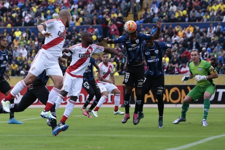 Superado siempre en el trámite del juego, River Plate perdió 2-0 este jueves por la noche frente a Independiente del Valle en el estadio Olímpico Atahualpa por la ida de octavos de final de la Copa Libertadores, resultado que lo obligará a una gran remontada la próxima semana en el Monumental si quiere seguir defendiendo el título del año pasado. En la primera mitad, el equipo de Marcelo Gallardo no logró tener la pelota en la altura y casi siempre se jugó en su propio campo, aunque el rival no estuvo fino en los últimos metros y careció de situaciones claras. En el complemento se agudizó el dominio ecuatoriano, que se vio premiado a los 64 minutos con un gol de Angulo que puso el 1-0, aprovechando un mal cierre defensivo de Maidana, y con un penal del propio central "millonario" ya en tiempo de descuento que Junior Sornoza canjeó por gol.Este resultado fue justo para los merecimientos de uno y otro equipo, por más que en la recta final River tuvo varias chances muy claras e incluso le anularon el que habría sido el 1-1 transitorio por un offside que no era.