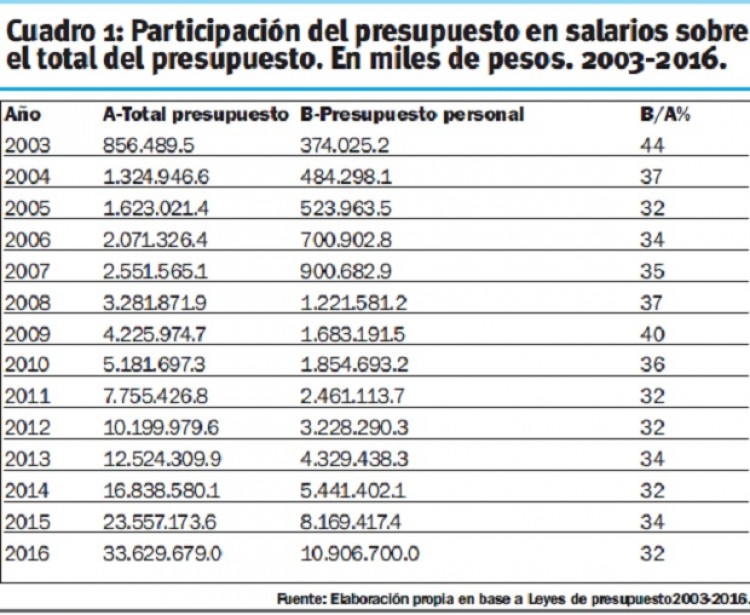 Desde 2003 en adelante, el Gobierno de Misiones redujo la porción del presupuesto anual destinada a salarios para empleados de la administración pública e incrementó significativamente la tajada que se destina a la obra pública. Las consecuencias más notorias fueron dos: la precarización de los trabajadores del Estado, que son los encargados de llevar adelante las políticas estatales (salud, educación, administración, etcétera) y el enriquecimiento de empresarios amigos, obras sobrefacturadas y la aparición de testaferros de los políticos de turno, etc.En el año 2003 el salario de los estatales se llevó el 44 por ciento del total del gasto de la provincia. Ese porcentaje se acerca al promedio que destina la mayoría de las provincias del país para reconocer a sus trabajadores. Sin embargo, Misiones fue cambiando desde aquel momento hasta este año, alejándose del promedio general, hacia abajo.Cada vez menos para salarios, cada vez más para obra pública. Esto a pesar de crear nuevos ministerios, nuevos organismos y tener mucho más personal. Para este año se prevé destinar en salarios solamente 32 por ciento del total que gastará la provincia.De acuerdo al informe elaborado por el equipo de investigación y capacitación de la CTA-A Misiones (con la Ley de Presupuesto como fuente), el 2016 será el año de menor inversión en salarios, al mismo nivel (32%) que los años 2005, 2011, 2012 y 2014. Los mejores tiempos fueron 2003, con 44 por ciento y 2009 con el 40% para salarios (ver recuadro 1).En el 2003 la administración pública de Misiones contaba con un plantel de 27 mil empleados en planta permanente, cifra que vino creciendo año tras año hasta llegar a 47.699 en 2016; pero sin tener en cuenta los miles de contratados con relación, sin relación y monotributistas que viven del paupérrimo sueldo del Estado, pero que no figuran en estos números oficiales.“Nos parece que el Estado ha asignado un rol secundario a los trabajadores estatales. Las políticas públicas se implementan a través de los trabajadores estatales y el hecho que dentro de la ley de presupuesto la porción asignada a pago de trabajadores haya disminuido en 12 puntos porcentuales muestra que hoy los trabajadores estatales tenemos mucho menos importancia”, sostuvo al respecto de este informe el secretario de Previsión de la CTA, Juan “Chito” Pasaman. Se quejó porque los estatales son los que aplican las políticas del Estado y no se los valora, como “el maestro que enseña, la enfermera que te cura, el empleado judicial al que se le exige celeridad en sacar un dictamen, los trabajadores de asuntos agrarios y ecología”, indicó.“Hay que recuperar la porción de presupuesto asignada a salarios. Nosotros desde la Central estamos planteando que no pueden existir dentro de los estados en la provincia de Misiones ningún trabajador que perciba salario por debajo del salario mínimo vital y móvil. Es un convenio de la OIT que no ha firmado Argentina, pero es una ley vigente”, agregó Pasaman.Más para obra públicaEn forma opuesta a la disminución de la porción para salarios, la que se destina a obra pública tuvo un impresionante crecimiento desde el 2003 en adelante. Los datos del informe confeccionado por la CTA, que alcanzan hasta el 2011, describen que la obra pública se llevó 16,7 por ciento del presupuesto en el primer año de la Renovación en el Gobierno y en el 2011, año de la reelección de Maurice Closs, la provincia destinó el 39 por ciento de todo su gasto.Queda claro que la gestión renovadora priorizó beneficiar a los empresarios constructores y empobrecer a los empleados estatales, creando una nueva clase de ricos que pasaron a manejar fortunas de manera casi instantánea.Este año, nuevamente, la obra pública prevé una inversión de casi el 40% del presupuesto. De un total de 33 mil millones, se destinarán casi diez mil millones de pesos, según la ley aprobada el año pasado. Los principales administradores de la obra pública son el Iprodha, Vialidad provincial, Arquitectura y la subsecretaría de Obras Públicas, dependiente del Ministerio de Hacienda.Disparidad entre estatalesEl informe destaca que en 2011 cobraban todos los estatales igual, una suma de 2.300 pesos al ingresar a cada rubro: administración central, policía, salud pública, educación.Algo pasó y en estos últimos cuatro años el equilibrio se rompió. Las fuerzas de seguridad (Policía y Penitenciaría) incrementaron sus ingresos de manera significativa, al punto de llegar en 2014 a 8.600 pesos y en 2015 a doce mil pesos.En cambio las otras áreas quedaron relegadas: en 2014 docentes, enfermeros y empleados públicos llegaron apenas a 3.400 pesos de básico y en 2016 alcanzaron los 6.000 pesos. “El policía es un trabajador más jerarquizado, no está mal, pero planteamos que todos deben ganar igual que el policía, que no sea el Estado el que haga discriminaciones”, señaló Pasaman.“En 2011 cobrábamos todos igual al ingreso, pero hoy la situación de los policías ha mejorado, ahora planteamos que el enfermero, el maestro, el de administración central deberían tener al ingreso el mismo salario que un policía”, agregó.