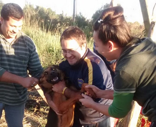 Cerca de las 16:30 de este domingo, personal del Comando Radioeléctrico se constituyó sobre la calle Italia 655 a solicitud de un vecino identificado como Marcelo Torales, quien manifestó a los uniformados que durante la madrugada anterior una hembra de raza manto negro y de nombre "Maite", propiedad su padre Ireneo Torales (69), cayó en un profundo pozo sin agua de 4 metros de profundidad ubicado en un terreno baldío lindante a su propiedad.De forma inmediata, los policías solicitaron la colaboración de los efectivos de la División Bomberos y se abocaron a la tarea de socorrer al animal.Luego de un buen tiempo, se logró rescatar al can sano y salvo para alegría de los participantes en el operativo y fundamentalmente de su dueño, quien mostró todo su agradecimiento.Fotos: Policía de Misiones