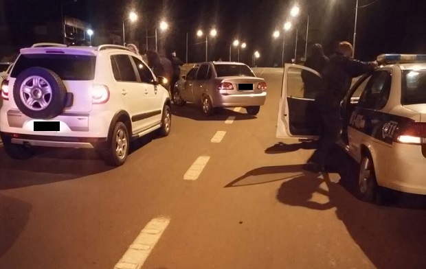 A partir de la denuncia de un robo calificado del que fue víctima un joven de 19 años en los primeros minutos de este martes, la comisaría de Leandro N. Alem inició un espectacular operativo para detener a los autores.Alrededor de la 1:20, dos individuos interceptaron a la víctima y, a punta de arma fuego, le sustrajeron un celular táctil y una billetera con 1.500 pesos, antes de darse a la fuga en una camioneta Volkswagen Fox de color blanco.Agentes policiales pudieron identificar al vehículo en una recorrida y se inició entonces una veloz persecución en dirección a Oberá. Al llegar al acceso a la localidad de Guaraní se logró interceptar la camioneta, que era conducida por una joven de 20 años, identificada como Alina Soledad C. y con domicilio en la provincia de Buenos Aires, quien viajaba acompañada por Rodrigo M. de 21, su hermano Lucas Ismael M. de 18 (ambos domiciliados en Misiones) y Micaela Fernanda S. (18), también procedente de Buenos Aires.Todos ellos, o al menos los varones, según los primeros informes, serían de la etnia gitana y quedaron demorados, mientras que el vehículo en el que huían fue secuestrado.En poder de los jóvenes se encontró el dinero y el celular, aunque todavía se busca el arma de fuego utilizada presuntamente en el asalto. El operativo, a cargo de la División Investigaciones y del Comando Radioeléctrico Alem, fue monitoreado por las cámaras de seguridad de la zona.Fotos: Policía de Misiones