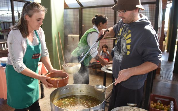 Con el objetivo de promover el consumo de poroto negro, colorado y legumbres de producción local, la Secretaría de Agricultura Familiar preparó el jueves una gran feijoada en el Mercado Concentrador Zonal (MCZ) de esta ciudad. Luego fueron repartidos gratuitamente entre los feriantes y compradores que visitaron el lugar.La actividad fue en adhesión al Año Internacional de las Legumbres declarado por la Organización de las Naciones Unidas para la Alimentación y la Agricultura (FAO).“Para nutrir el caldo de la vida”En una gran olla de cien litros, el poroto negro fue el centro de la receta. Los doce kilos de esta legumbre fueron acompañados con zapallo, cebolla, morrón, apio, cebollita de verdeo, trozos de carne vacuna, pollo y patitas de cerdo.“Comenzamos a las 6.30 picando las verduras”, indicó a PRIMERA EDICIÓN David Valera Sendra, de la Dirección de Certificación Participativa quien en la ocasión ofició de cocinero. “Los porotos necesitan remojo previo de 8 a 12 horas. Y para cocinarlos se debe cambiar previamente el agua en que fueron remojados”, agregó.Indicó que por tener ese paso previo, algunos dejan de lado este producto en la cocina regional. Con eso también se pierde la posibilidad de lograr un alimento sano y de alto valor nutricional. “El poroto negro o el colorado, que se pueden conseguir en la producción local, con una porción de arroz aportan la proteína completa y los niveles nutricionales adecuados”, destacó Valera Sendra. Por su parte, la Secretaria de Agricultura Familiar, Marta Ferreira, destacó a este Diario que “los feriantes de Misiones producen una gran variedad de legumbres frescas, que aportan nutrientes necesarios y a precios accesibles”. Entre ellas se destacan los porotos colorado y negro, arvejas, poroto pallar, y otros.La jornada, que pese al ascenso de temperaturas se mantuvo fresca, aportó el marco ideal para promover el consumo de este tipo de platos en un guisado bien completo. Igualmente cabe señalar que se pueden consumir en forma de ensaladas.Llegando el mediodía los cien litros de feijoada se repartieron más de 300 pequeñas cazuelitas a los clientes del MCZ, a los feriantes, vecinos y demás presentes. Hubo quienes se acercaron con sus ollas y recipientes para llevar a su casa el sabroso alimento para toda la familia. Importante valor nutricionalEl año Internacional de las Legumbres 2016 se propone sensibilizar a la población mundial sobre las ventajas nutricionales de las legumbres como parte de una producción de alimentos sostenible encaminada a lograr la seguridad alimentaria y la nutrición.Las legumbres contienen el doble de proteínas que los cereales integrales. Para completar la absorción de nutrientes y especialmente del hierro, se recomienda agregar al plato unas gotas de limón. De este modo, con el agregado de vitamina C, el alto contenido en hierro de las legumbres las convierte en un potente alimento para recargar los depósitos de hierro, en especial en las mujeres en edad reproductiva, que tienen más riesgo de anemia, señalan desde la FAO. Por su bajo índice glucémico, bajo contenido en grasa y alto contenido en fibra, las legumbres son adecuadas para los diabéticos.