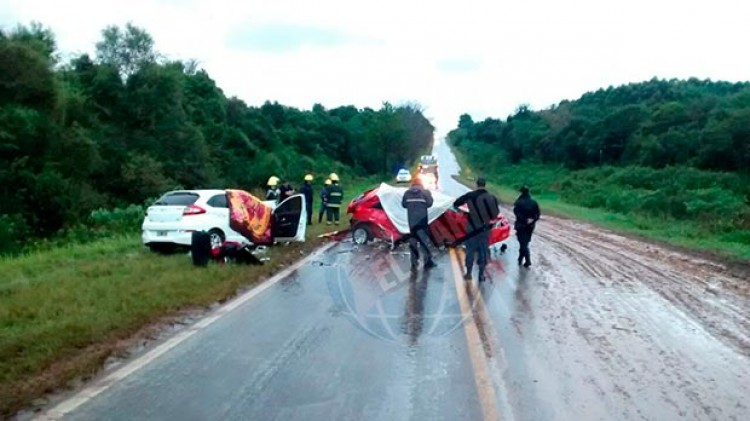 Siete personas fallecieron en tres accidentes de tránsito que se registraron entre el sábado y el domingo en otras tantas localidades misioneras. En el hecho más luctuoso, ocurrido este domingo por la tarde, dos familias terminaron destrozadas al producirse un brutal choque frontal entre dos automóviles sobre el kilómetro 1.434 de la ruta nacional 12, a la altura de San Ignacio. Un total de cuatro fallecidos y tres menores heridos fue el lamentable saldo de este siniestro vial, protagonizado por un Wolkswagen Gol y un Cherry Fulwin.En el interior del primero se hallaron dos cadáveres, de un hombre y una mujer, mientras que en el asiento trasero fue encontrada una niña herida. Los cuerpos sin vida fueron identificados como Catalina Lewes e Ignacio Garcete, ambos mayores de edad y oriundos de Puerto Esperanza, mientras que en la parte trasera viiajaba una nena de nueve años, que tuvo que ser trasladada a un centro asistencial debido a las lesiones de consideración que sufrió. En el Cherry fueron hallados los cadáveres de Oscar Camargo y Felicia Camargo, también adultos, procedentes de Candelaria, además de Emeregildo Camargo (58) y Rosana Paredes (41), quienes fueron hospitalizados con distintas heridas. Dos motos de frenteEn Colonia Guaraní, alrededor de las 3:00 de la madrugada de este domingo, un choque entre dos motocicletas de 150 cc. dejó como resultado el fallecimiento de dos hombres. En base a pericias preliminares, se supo que a esa hora ambos rodados circulaban en sentido contrario, sobre la ruta nacional 14 cuando colisionaron en inmediaciones del Cruce Karaben. Producto del hecho fallecieron prácticamente en el acto Javier Orlando López, de 30 años y domiciliado en Oberá, e Isidro Javier Arnold, de 34 y residente en Mártires. Además, un joven de 19 años que viajaba como acompañante de Arnold sufrió lesiones de gravedad y tuvo que ser hospitalizado. Cayó y la atropellaronEl sábado, después de las 19:00, otro accidente en la ruta nacional 12 a su paso por Santa Ana había dejado otra víctima fatal identificada como Soledad Gómez (30), quien iba como acompañante de una motocicleta Honda Wave 110cc conducida por Alberto N. (34) que se desplazaba en sentido de circulación Loreto-Santa Ana y -por causas que se tratan de establecer- despistaron en una zona de banquina.La mujer cayó a la cinta asfáltica y fue arrollada por un vehículo Fiat Duna guiado por Gaspar Alejandro G. (40).