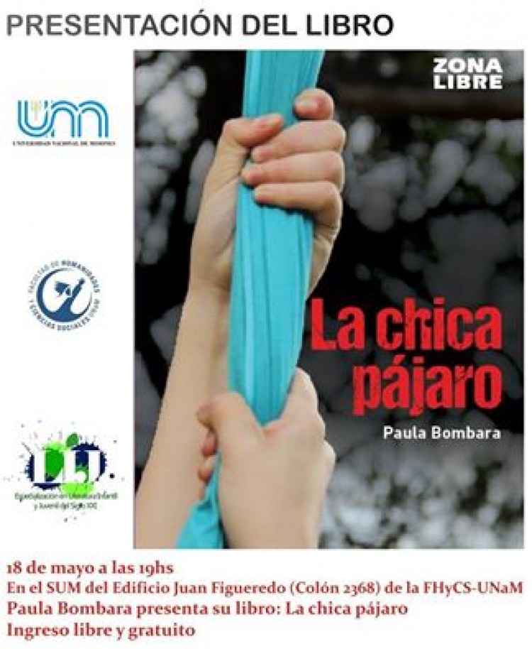 Paula Bombara presentará este miércoles por la tarde su libro "La chica pájaro", incursiona en el tema de violencia de género. El acto será a las 19:00 en el Salón de Usos Múltiples del edificio Juan Figueredo de la Facultad de Humanidades y Ciencias Sociales de la Unam, en la calle Colón 2.368 de Posadas, primer piso.Bombara estudió Filosofía y se graduó de Bioquímica, pero se dedicó de lleno a la escritura. Es directora, desde 2003, de la colección de divulgación científica infantil “¿Querés saber?” publicada por Eudeba, y por el lado de la ficción publicó cuentos y novelas dentro de la especialidad infantil y juvenil como "El mar y la serpiente" (2005), “Eleodoro” (2006), “Solo tres segundos” (2011) y la colección de cuentos “Pictogramas fantásticos” (2003).La actividad es abierta y gratuita, en el marco de las II Jornadas Internacionales de Literatura Infantil y Juvenil que se realizarán en el Parque del Conocimiento del 18 al 20 de mayo.