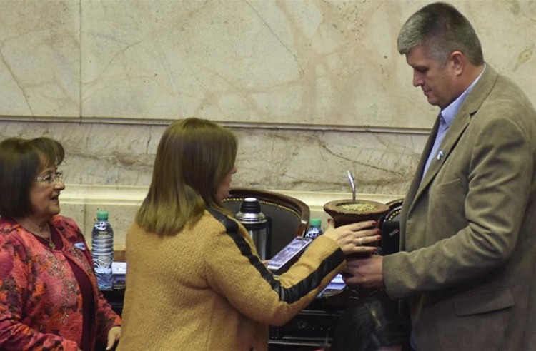 La foto que muestra a una diputada nacional durante la sesión que trata la ley antidespidos sosteniendo un mate de grandes proporciones recorre con fuerza las redes sociales y los usuarios se preguntan los motivos de su particular tamaño.La legisladora Norma Abdala de Matarazzo, es oriunda de Santiago del Estero y forma parte de la bancada del Frente Cívico. Pero no es la dueña del mate, que en realidad pertenece al misionero Alex Ziegler.El representante de la tierra colorada explicó que el porongo es un regalo que le hizo un grupo de productores misioneros cuando aún era ministro del Agro y la Producción local, en 2009.Así lo reveló desde la Cámara Baja al diario La Nación. "El mate es de la zona fronteriza con Brasil, de San Pedro. Es un afecto. Tiene inscriptas las palabras ‘Bendiciones ministro’. Me lo dieron los productores para que los tuviera presentes en el Congreso", contó el eldoradense.Las dimensiones del mate tienen un motivo: el ministro, de 51 años, mide 2 metros y tiene manos grandes. "Cuando me lo regalaron me dijeron ‘como tu mano es grande, el mate es grande". Aunque Ziegler asegura que el artefacto no es tan desproporcionado como puede parecer entre las manos de su colega de Santiago del Estero, tiene más de veinte centímetros de alto y aproximadamente quince de boca, está hecho de calabaza y no posee tanta capacidad como aparenta: tan sólo alberga 150 gramos de yerba."Lo comparto con todos. Con diputados y con el personal de la cámara. Con todo el que quiera un amistoso mate misionero", contó Ziegler.Fuente: diario La Nación