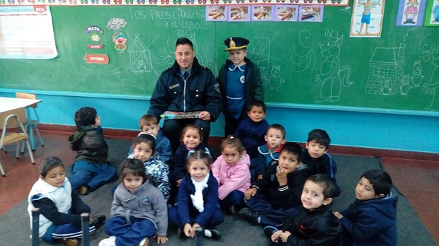 A pedido de los niños, un Subcomisario leyó cuentos en una escuela