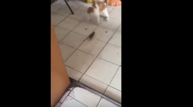 La mujer  pudo ser testigo de cómo su gato "perdía" contra un ratón. .