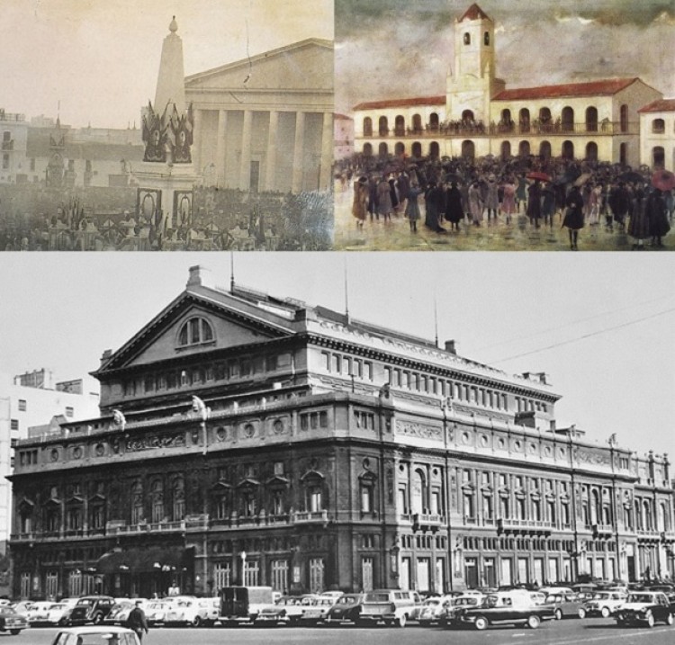 La RevoluciónEl 25 de Mayo de 1810 se formó el primer Gobierno patrio. Reunido en la Plaza de la Victoria, actual Plaza de Mayo, el pueblo de Buenos Aires impone su voluntad al Cabildo y crea la Junta Provisoria Gubernativa del Río de la Plata. Sus integrantes fueron: Cornelio Saavedra, presidente; Juan José Castelli, Manuel Belgrano, Miguel de Azcuénaga, Manuel Alberti, Domingo Matheu, Juan Larrea, vocales; y Juan José Paso y Mariano Moreno, secretarios. Los cabildantes reconocieron la autoridad de la Junta Revolucionaria, quien desconoció la autoridad del Consejo de Regencia español. Reproducimos a continuación algunos fragmentos del libro de Felipe Pigna "1810", donde se relata la encendida jornada: "El Cabildo se reunió a las 9 y trató en primer lugar la renuncia de Cisneros. Los recalcitrantes que todavía dominaban la institución intentaron resistir y, a través del síndico Leiva, argumentaron que el Cabildo no estaba en condiciones para delegar la autoridad. Opinaron que el pueblo no debía influir en las decisiones. Seguidamente, propusieron que la fracasada junta presidida por Cisneros reasumiera sus funciones y que los comandantes se dispusieran a reprimir el desborde popular a sangre y fuego y a fusilar a algunos cabecillas como escarmiento. Pasaban las horas, hacía frío, llovía y continuaban las discusiones". "El cabildo había convocado a los jefes militares y estos le hicieron saber al cuerpo a través de Saavedra que no podían mantener en el poder a la Junta del 24 porque corrían riesgos personales porque sus tropas no les responderían. Dice el acta del Cabildo: ’Estando en esa sesión la gente que cubría los corredores dieron golpes por varias ocasiones a la puerta de la sala capitular, oyéndose las voces de que querían saber lo que se trataba’".La Pirámide de MayoAl año siguiente, el 25 de mayo de 1811, se inauguró en Buenos Aires la Pirámide de Mayo, cuya construcción se encargó al alarife Pedro Vicente Cañete. Luego se la reformó según un proyecto de Prilidiano Pueyrredón, quedando en su interior la primitiva, pero el vaso decorativo que la remataba fue sustituido por la Estatua de la Libertad que ahora presenta. El 21 de mayo de 1942, en vísperas de una nueva celebración del 25 de Mayo, la Pirámide de Mayo fue declarada Monumento Histórico. En 1899 se traslada la pirámide al centro de la plaza. Así fue como la pirámide fue despojada de las cuatro estatuas originales que adornaban los ángulos de su pedestal.El teatro ColónCon la representación de la ópera “Aída”, de Giuseppe Verdi, a cargo de Lucía Crestani y el afamado tenor italiano Amadeo Bassi, se inaugura el 25 de mayo de 1908 en Buenos Aires el Teatro Colón, uno de los escenarios más prestigiosos y famosos del mundo. La construcción es obra de los arquitectos Francesco Tamburini, Vittorio Meano y Jules Dormal. Comenzó a edificarse en 1889 y tardó 20 años en ser terminado. La sala principal, en forma de herradura, cumple con las normas más severas del teatro clásico italiano y francés y tiene una superficie de 58 mil metros cuadrados y capacidad para 2.487 espectadores. Su cuidada acústica lo convierte en una de las óperas mas buscadas por los artistas líricos y directores de orquesta. En su escenario se presentaron figuras del arte mundial tales como Richard Strauss, Igor Stravinsky, Manuel de Falla, Enrico Caruso, Maria Callas, Luciano Pavarotti, Arturo Toscanini y Rudolf Nureyev. En 2010 se terminaron los trabajos de restauración del Teatro Colón iniciados en 2006.