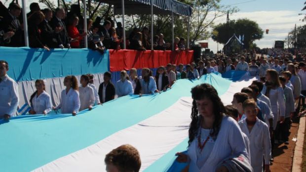 Con un marco de verdadera fiesta popular y una multitudinaria concurrencia, la plazoleta de los Inmigrantes de 25 de mayo fue sede del acto central provincial por los 206 años de la Revolución de Mayo. La ceremonia fue encabezada por el gobernador Hugo Passalacqua, acompañado por el intendente anfitrión, Pedro Wdowin; el presidente del Superior Tribunal de Justicia, Froilán Zarza; ministros del Poder Ejecutivo provincial; legisladores provinciales y nacionales; y dirigentes sindicales.Desde temprano, centenas de familias coparon las inmediaciones para presenciar la celebración popular que congregó además a decenas de delegaciones escolares, agrupaciones tradicionalistas, efectivos militares y representantes de asociaciones civiles para el desfile cívico militar programado. Banderas y guirnaldas celestes y blancas de lado a lado en cada una de las calles, tanto la principal como las adyacentes, aportaron una distinción alegórica.Luego de depositar una ofrenda floral por quienes dieron su vida por la Patria, y de la invocación religiosa, el gobernador ofreció un encendido discurso en el que trazó un parangón entre la hidalguía y el heroísmo de los hombres de Mayo, y los pioneros que forjaron los cimientos de esta provincia. "Aquellos hombres que eran muchachos, eran gente muy joven en 1810, se plantearon una ruptura con la vieja política, querían ser felices, no querían tener patrones de afuera, querían progreso, querían trabajo, querían igualdad. No que hubiera una élite y una casta, querían que todo sea para todos, ese era el pensamiento de los hombres de Mayo. Y díganme si no es el pensamiento de nuestros pioneros cuando vinieron acá y no había nada de nada y junto con los criollos y los hermanos guaraníes hicieron esta hermosura que estamos viendo y que se llama provincia de Misiones. Ellos tienen la misma cuota de heroísmo, siento lo mismo estando hoy acá de lo que habrán sentido los hombres de Mayo", arengó."Aquellos fueron tiempos dificilísimos, imposibles de describir hoy, hay que buscar algún abuelo que nos cuente lo que era venir acá, en la oscuridad, en el medio de la selva, aventura pura. Quién sabe dónde terminarían y nadie garantizaba nada, como tampoco le garantizaba nada a nadie en 1810. Pero había algo que estaba germinando", remarcó Passalacqua."Hubo que tomar decisiones, decisiones en momentos difíciles como los que estamos hoy, y hay que decirlo hoy la Patria, Misiones está en un momento difícil. La cosa no está fácil pero solamente haya que tomar la inspiración de aquellos hombres pioneros, de aquellos hombres patriotas para sacar fuerza, garras, coraje, y es lo que estamos haciendo hoy todo el pueblo. Es impresionante ver acá la cantidad de gente que hay, les aseguro que impresiona", insistió.Luego, el Gobernador retomó el concepto de sinergia comunitaria que viene expresando en sus discursos e hizo hincapié en la necesidad de la colaboración solidaria en momentos de crisis: "Estando juntos es más fácil, eso lo entendieron los hombres de Mayo, hay que estar juntos. Lo digo siempre, si ustedes agarran un gajo se rompe fácil, pero agarren un montón un fajo de gajitos no se rompe. Así está la familia misionera, junta como ese gran gajo, nadie nos va a quebrantar. Así somos, esa es la lección que nos dieron los pioneros, esas son las ganas que contagian".Nuevo espacioAntes del acto central, el Gobernador dejó inauguradas junto al intendente Wdowin las instalaciones del nuevo Salón de Usos Múltiples, un amplio espacio techado, provisto de tribunas, cancha de deportes, escenario y salones, obra que fue ejecutada por la Dirección General de Arquitectura.De paso por Cerro CoráMás tarde, Passalacqua visitó el municipio de Cerro Corá, donde también hubo una gran fiesta comunitaria. El intendente Diego Pedroso recibió al mandatario y juntos recorrieron el predio en el que se congregaron los vecinos para las actividades programadas. Fuente y Fotos: Prensa Gobernación