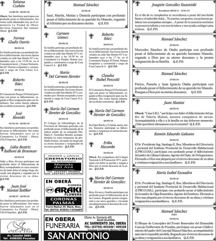 • Fúnebres del miércoles 31 de diciembre de 2025