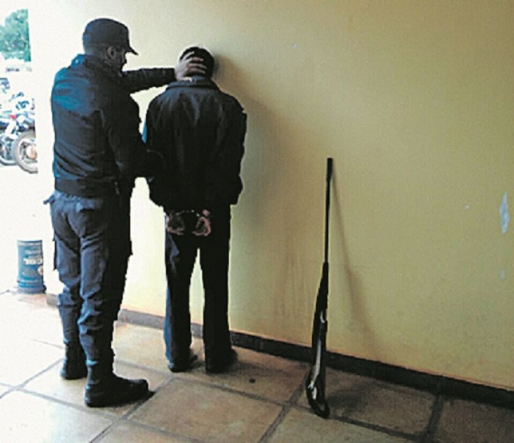 Por motivos que no fueron establecidos, un hombre de 28 años fue detenido pocos minutos después del mediodía del sábado, denunciado de haber amenazado con asesinar a balazos a un motociclista sobre la ruta provincial 8, en jurisdicción de Campo Grande.El denunciante y presunta víctima relató en la comisaría local que, cuando llegaba al kilómetro 10 de la mencionada ruta, fue interceptado por un Fiat Siena verde, cuyo conductor le apuntó con una escopeta y profirió las amenazas. El motociclista huyó del lugar y recurrió a la fuerza de seguridad. La respuesta fue rápida y el sospechoso aprehendido dentro del Siena con una escopeta modificada calibre 14 y cargada.