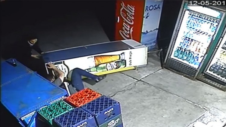 Un hombre algo pasado de copas quiso continuar la juerga y no tuvo mejor idea que robar cervezas de la exhibidora de un local. Su fallido intento quedó documentado en un video de YouTube que ya se ha convertido en viral por lo gracioso de la escena.El hecho ocurrió en la ciudad de Belgrado, en Serbia, dos sujetos hacen su aparición en un establecimiento que ya había cerrado, pero cuyas exhibidoras de gaseosas y cervezas permanecían en el exterior.Todas las heladeras estaban cerradas – explica el sitio PR- pero los sujetos estaban dispuestos a todo para lograr hurtar todas las cervezas y continuar bebiendo. Según se observa en el clip de YouTube, el otro hombre jala demasiado fuerte la puerta de la máquina y ésta le cae encima.El inexperto ladrón quedó varios segundos tirado en el suelo, aplastados por la máquina de gran tamaño. Su compañero tuvo que dejar su cerveza a un lado y acudir en su ayuda. Al final, ambos tuvieron que retirarse del lugar si poder concretar su robo.