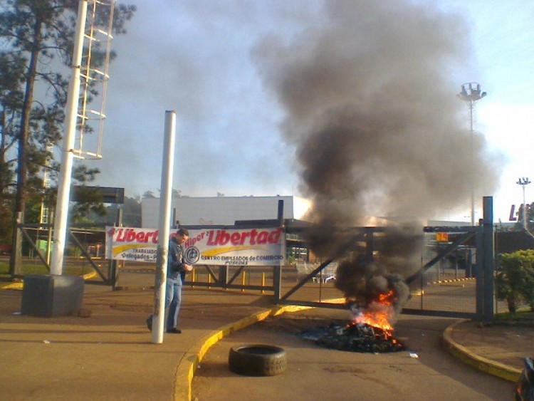 Empleados de Comercio bloquean acceso al Hiper Libertad