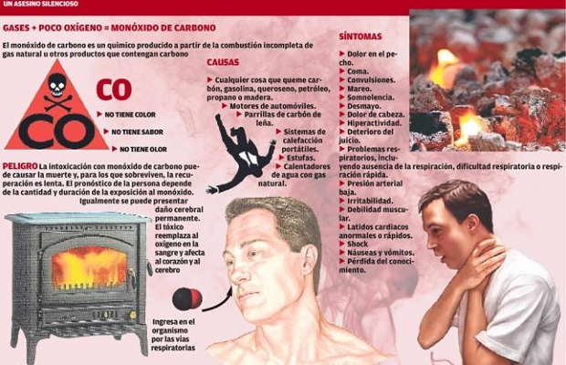 En este sentido, explican que el monóxido de carbono es un veneno que no tiene color, olor, sabor y no irrita los ojos ni la nariz. Al no poder percibirse, es necesario tomar medidas preventivas para evitar que el monóxido contamine nuestra casa.¿Cómo se produce la intoxicación por monóxido de carbono?La inhalación e intoxicación por monóxido de carbono produce que éste reemplace al oxígeno en el torrente sanguíneo. En consecuencia, la falta de oxígeno hace que sufran el corazón, el cerebro y el cuerpo.Para ello es fundamental dejar una ventilación permanente en cada ambiente. Además de ventilar toda la casa una vez por día, es fundamental mantener siempre abierta una ventana o puerta en los ambientes calefaccionados aunque haga frío; observar que la llama de gas sea siempre de color azul (la llama amarilla es signo de mala combustión y generación de monóxido); si se usa brasero o estufa a querosén, apagarlos afuera de la casa antes de irse a dormir, siempre; no instalar calefones en el baño, ni en espacios cerrados o mal ventilados; en baños, dormitorios y ambientes cerrados solamente instalar artefactos con salida al exterior (de tiro balanceado); controlar anualmente las instalaciones y el buen funcionamiento de los artefactos de la casa. Se recomienda hacerlas revisar por parte de personal autorizado.Ante síntomas de intoxicación es necesario ventilar el ambiente y recurrir rápidamente a un centro de salud u hospital¿Cuáles son sus síntomas?Los síntomas pueden variar de una persona a otra. Quienes tienen mayor riesgo de intoxicación son los niños pequeños, los adultos mayores, las personas con enfermedades cardíacas y/o pulmonares, los fumadores y las personas que habitan en zonas de gran altitud.El principal riesgo de este tipo de intoxicación es que en muchos casos la persona no es consciente de los síntomas. Éstos pueden ser dolor de cabeza; náuseas o vómitos; mareos, acompañados de cansancio; letargo o confusión; desmayo o pérdida de conocimiento; alteraciones visuales; convulsiones; estado de coma.Ante los primeros síntomas, es necesario ventilar el ambiente y recurrir a un centro de salud u hospital y/o asistir a un servicio de emergencias médicas. Infórmele al personal médico sobre la sospecha de estar sufriendo intoxicación por monóxido de carbono.