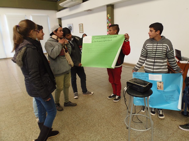 La interventora, a cargo de la dirección del CEP 6, Marisa Vera López, comentó que los alumnos fueron seleccionados de diversos cursos para participar del taller en el Hogar de Día, “porque en la escuela hay mucha vulnerabilidad y hay alumnos que tienen problemas, tanto de conductas como de situaciones de consumo”. Los estudiantes el martes llegaron al Hogar a las 9, recorrieron el Hogar, los distintos espacios y conocieron los salones donde se dictan los talleres y apoyo escolar. “Para nosotros es muy importante que ellos conozcan esta institución, porque también en el barrio, en las familias hay muchas necesidades, entonces por ahí ellos mismos pueden sugerir o acercarse”, comentó la encargada del establecimiento escolar. La psicopedagoga de la escuela, Laura Rodríguez, destacó que actualmente bajó la violencia, “de igual manera, consideramos importante y necesario que vinieran, los alumnos fueron seleccionados para que participen del taller, porque sabemos que necesitan mucha contención”. En el taller, luego de un video disparador sobre adicciones y los efectos que causa el consumo de sustancias adictivias, los chicos trabajaron en grupos con distintas preguntas y compartieron con sus compañeros las consideraciones que escribieron en los afiches. La falta de contención, los conflictos familiares, el querer pertenecer a determinado grupo, según los mismos alumnos, hace que los jóvenes elijan “probar” las drogas y el alcohol “y después no saben cómo parar”. “¿Quién conoce a algún amigo que consume?”, fue la pregunta de una de las profesionales, casi todas las manos se levantaron en el Salón de Usos Múltiples del Hogar de Día. “Lamentablemente esa es una realidad y por eso trabajamos y sabemos que es necesaria la prevención y que los profesionales hablen con ellos”, agregó Vera López posteriormente al equipo de profesionales. La Subsecretaria de Atención Integral Comunitaria, Alicia “Tequi”Duarte, saludó al grupo y manifestó que las puertas siempre están abiertas y que pueden acercarse cuando necesiten o deseen realizar alguna consulta, ya que el Hogar cuenta con profesionales en los distintos departamentos de Educación, Salud, Desarrollo Social y Jurídico, que brindan atención, asesoramiento y contención, de acuerdo con la demanda del niño, adolescente y su familia. El taller estuvo a cargo de las licenciadas en psicología Vanesa Vorszcz, Romina Roitbourd, Noelia Moura, la psicopedagoda Yamila Coutinho y el licenciado en educación especial, Gustavo López. El taller se realizó en el marco del convenio interinstitucional entre la Subsecretaría de Atención Comunitaria, el Hogar de Día y la Entidad Binacional Yacyretá (EBY); desde el año pasado se trabaja de manera coordinada para atender a la población de los barrios de relocalizados.