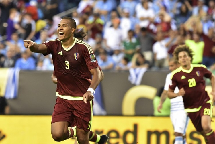 Un gol de Salomón Rondón a los 36 minutos del primer tiempo, cuando su equipo no lo merecía, y una gran producción colectiva a partir de entonces dieron a Venezuela un resonante e histórico triunfo sobre Uruguay este jueves por la segunda fecha de la zona C de la Copa América Centenario.El 1-0 final en Philadelphia clasifica matemáticamente a la Vinotinto a los cuartos de final del torneo, del que la Celeste sorprendentemente quedó afuera. México por su parte derrotó 2-0 a Jamaica con goles de Chicharito Hernández a los 18 minutos y Oribe Peralta a los 81, y aseguró también su clasificación a la siguiente instancia.