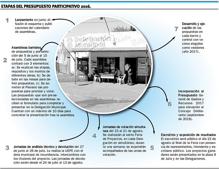 Este miércoles 15 de junio arrancará formalmente la primera etapa de la aplicación concreta del presupuesto participativo en Posadas, el primero de la provincia que pondrá en marcha en forma efectiva esta herramienta novedosa de participación ciudadana, vigente en la Carta Orgánica Municipal desde 2010. Mediante este procedimiento, serán los propios vecinos los que definirán qué obras o inversiones se realizarán en sus barrios con parte del presupuesto municipal 2017, decisión que deberá ser respetada por las autoridades comunales una vez que los proyectos o propuestas atraviesen las etapas de selección. La primera de estas instancias se desarrollará en las nueve delegaciones municipales en las que se realizarán 42 asambleas con vecinos de las distintas chacras que componen cada delegación. En estas asambleas barriales (que se extenderán hasta el 15 de julio) los delegados y el personal técnico de la Secretaría de Planificación Estratégica y Territorial y estudiantes del Instituto Misionero de Estudios Superiores de Gestión Pública y Desarrollo Humano (Imes) explicarán a los vecinos las etapas siguientes, los requisitos y los montos previstos para las diferentes obras o emprendimientos que se podrían encarar en cada barrio con el presupuesto previsto, de unos 18 millones de pesos en total, a razón de un promedio de dos millones por cada delegación municipal. Las propuestas que presentarán los vecinos serán evaluadas técnicamente para determinar si son posibles, si se adaptan a los requisitos del presupuesto y sobre todo, si promueven cambios culturales o ambientales positivos, buenas costumbres, la reducción de conflictos y una mejor convivencia; que involucren actividades de capacitación o formación, que posibiliten la articulación con las organizaciones civiles (clubes, asociaciones, iglesias, etc). El 22 de agosto, todas las propuestas que pasen el “filtro” de viabilidad (que cumplan los objetivos y que no superen hasta un tercio de lo presupuestado para cada delegación) serán votadas por los propios vecinos mediante el sistema de voto electrónico, posibilidad que la comuna está coordinando con el Tribunal Electoral de Misiones que desarrolló el sistema. Ya en septiembre, las propuestas serán incorporadas al proyecto de presupuesto municipal 2017 para su elevación al Concejo Deliberante. “Trabajamos un año y medio transmitiendo el concepto de participación y el conocimiento de las instancias de la ordenanza, en particular en las delegaciones municipales. Lo que vamos a hacer ahora son dos cosas: la primera es construir también en forma participativa la reglamentación de la ordenanza, porque si bien tenemos lineamientos generales, entendemos que es el vecino el que debe decidir de qué manera quiere participar y a través de qué mecanismos. La segunda es decidir, ya para finales de septiembre, en qué se gastará el 1,5% del presupuesto general de gastos y recursos de 2017 con las propuestas que elaboren y consensúen los vecinos en las asambleas y en la votación final. En esta construcción colectiva también podríamos decidir hacia adelante que ese porcentaje previsto en la ordenanza se aumente” explicó Laura Duarte, la titular de la Secretaría de Planificación Estratégica y Territorial de la comuna, quien explicó los pormenores de esta “prueba piloto” que posibilitará avanzar sobre la marcha en lugar de seguir teorizando sobre la aplicación de la herramienta. Quiénes participan En las asambleas barriales que comienzan mañana, podrán participar vecinos y representantes de las organizaciones de la zona. Los proyectos que pasarán a la segunda instancia de selección se definen en esa misma asamblea por voto a mano alzada y simple mayoría. Las organizaciones tendrán un solo voto, al igual que cada vecino. Todos pueden presentar propuestas. Se largan las asambleasLas primeras asambleas arrancan el miércoles 15 en la delegación de la Chacra 32-33 de mañana y de tarde para las zonas 1 y 2, y seguirán el jueves y viernes para las zonas 3 y 4; 5 y 6. El 21 las asambleas se retomarán en Villa Dolores Sur (zonas 1 y 2), el 22 y 23 en Villa Cabello (zonas 10 y 3; 9 y 4); El 24 de junio las asambleas se realizarán en nuevamente en la delegación de Villa Dolores Sur para las zonas 3 y 4. El 27 las reuniones volverán a ser en la delegación Villa Cabello (zonas 2 y 5) lo mismo que el 28 (zonas 8 y 1) y el 29 (zonas 6 y 7). El 30 de junio y el 1 de julio se harán en Santa Rita. Así sucesivamente hasta cumplimentar todas las reuniones previstas en todas las delegaciones de Posadas.