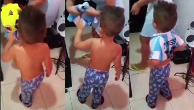 VIDEO: Niño colombiano solamente acepta ponerse la camiseta de Argentina