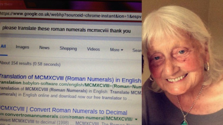 Ben John, un británico de 25 años de edad, se percató de la educada manera en la que su abuela de 85 años realizaba búsquedas en Google, anteponiendo siempre la palabra "por favor" y cerrando con un "gracias". Una de las búsquedas fue capturada en una imagen y se popularizó en las redes sociales."Por favor traduzca estos números romanos mcmxcviii gracias", escribió la anciana en Google. Su nieto se encargó de compartirlo en Twitter y hasta el momento ha logrado más de 15 mil ‘me gusta’ y ha obtenido más de 10 mil retweets.<p lang="en" dir="ltr">Omg opened my Nan’s laptop and when she’s googled something she’s put ‘please’ and ‘thank you’. I can’t ???????????? <a href="https://t.co/hiy2tecBjU">pic.twitter.com/hiy2tecBjU</a></p>— Ben John (@Push10Ben) <a href="https://twitter.com/Push10Ben/status/740980720726908929">9 de junio de 2016</a>u000ASegún informa el sitio PR, la octogenaria mujer escribe de esta forma porque piensa hay alguien – una persona física – en la sede de Google que se ocupa de las búsquedas que ella realiza. "Ella pensó que por ser educada y usar sus buenos modales, la búsqueda sería más rápida", declaró Ben John, quien luego compartió la foto de su abuela en la red social de microblogging.<p lang="en" dir="ltr">Finally managed to get my famous Nan to take a picture with me! <a href="https://t.co/DKgEZf5SiU">pic.twitter.com/DKgEZf5SiU</a></p>— Ben John (@Push10Ben) <a href="https://twitter.com/Push10Ben/status/743152128286425088">15 de junio de 2016</a>u000A